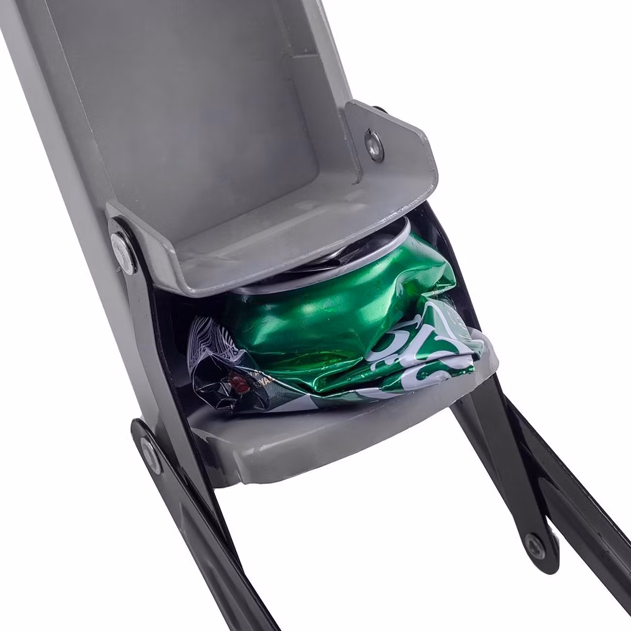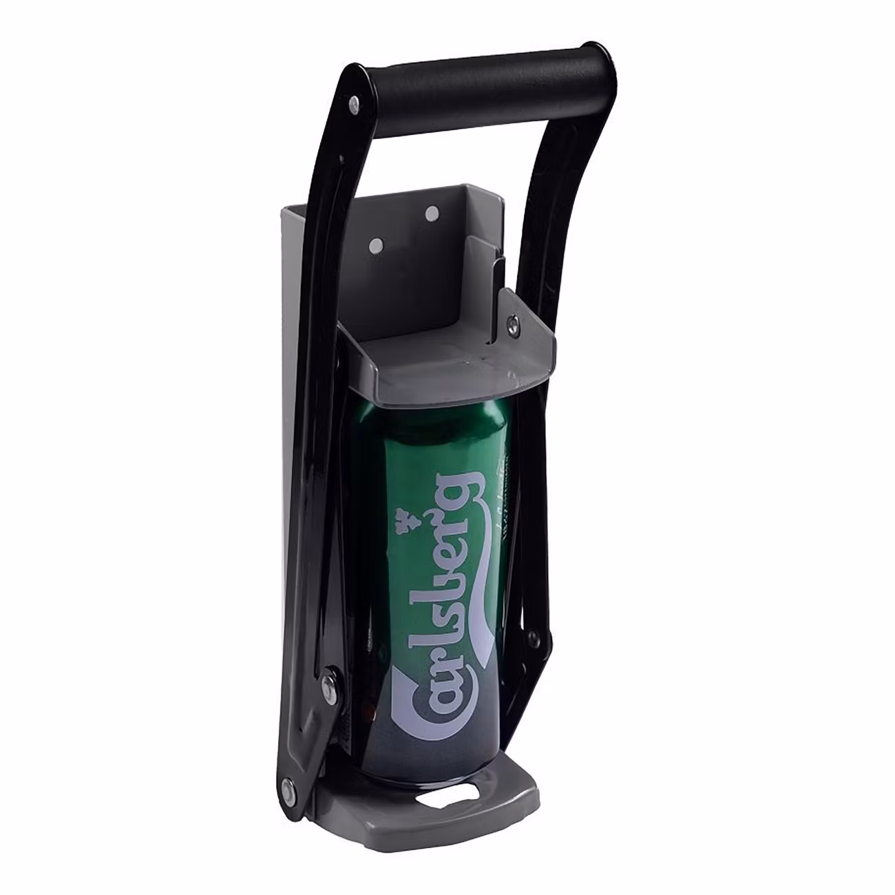 Burkkrossare med Kapsylöppnare har utrymme för burkar upp till 50 centiliter för att du enkelt ska kunna krossa dem till en bråkdel av sin storlek, vilket sparar utrymme i sop- och återvinningskärlen. Burkkrossaren levereras komplett med skruvar för att hängas upp på väggen och kommer med en inbyggd flasköppnare.
