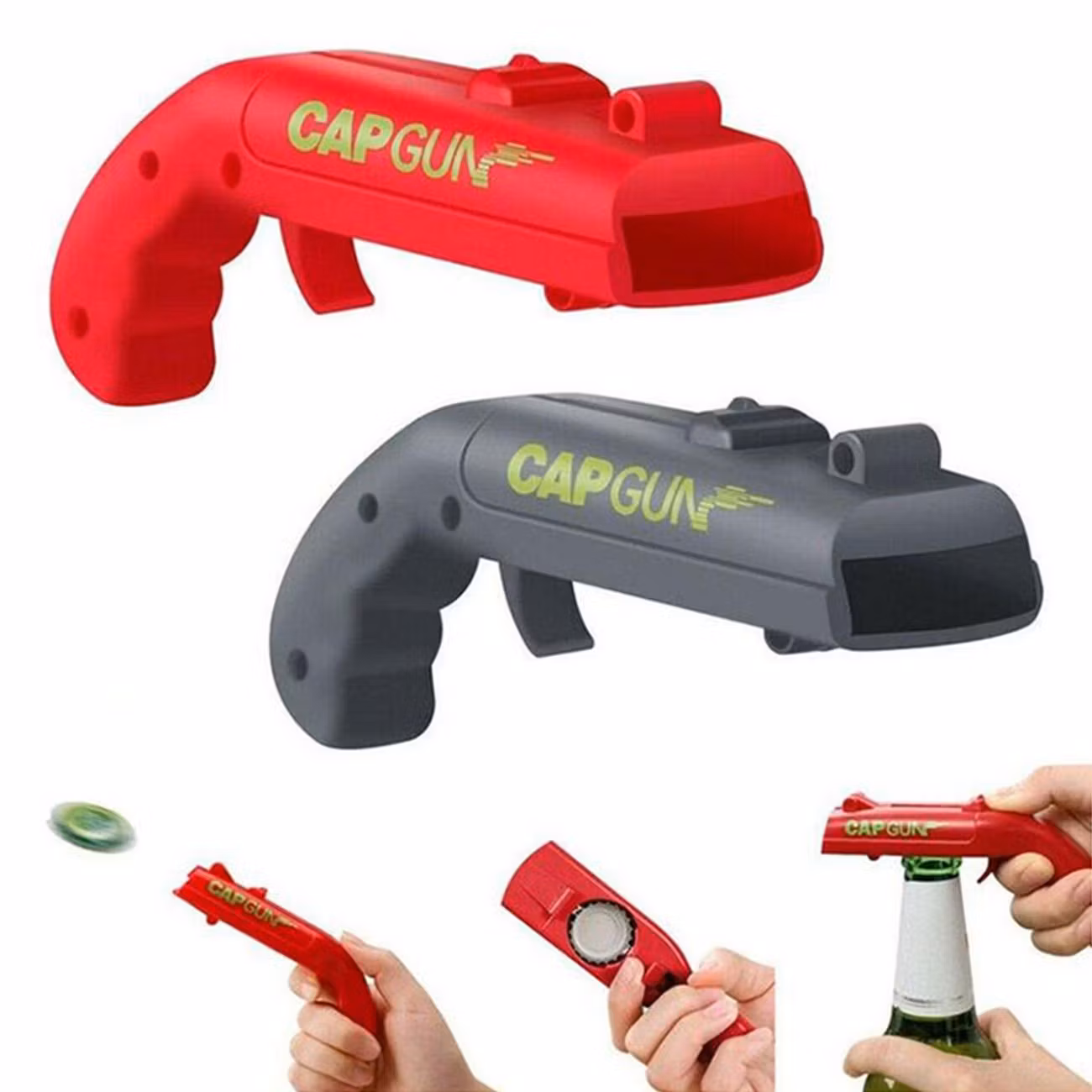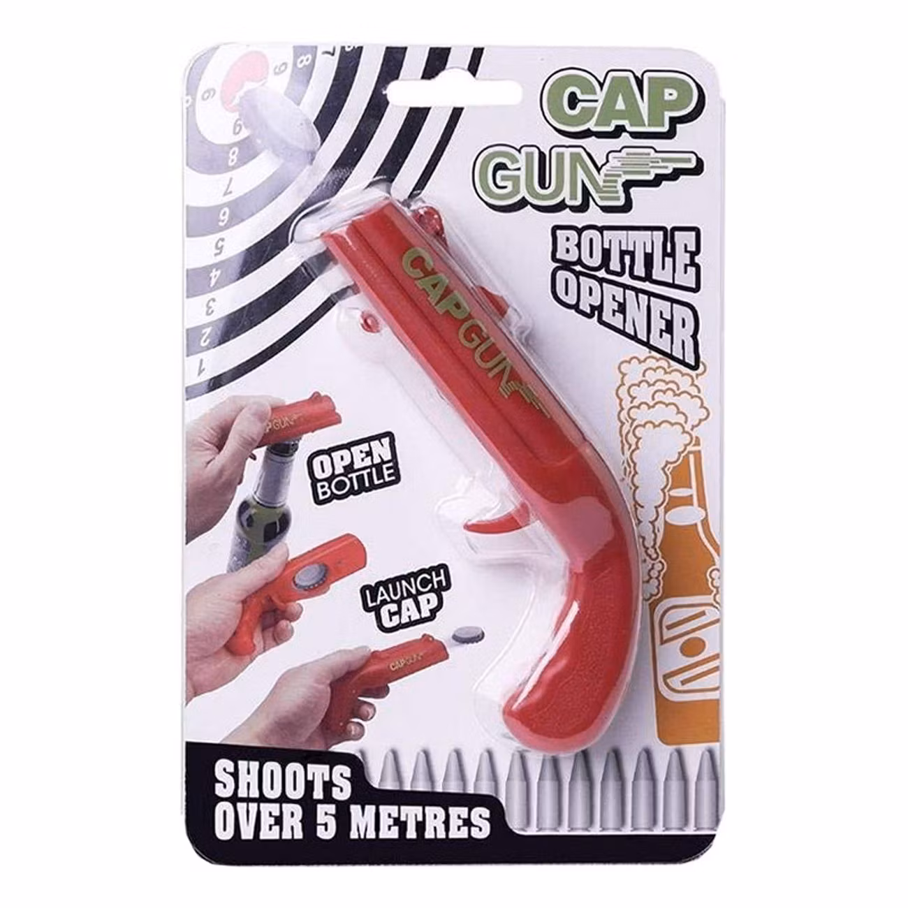 Öppna din favoritöl, sikta, skjut! Med en Capgun öppnar du inte bara kapsyler, du skjuter också iväg dem! Annordna en tävling som går ut på att skjuta prick med kapsylerna från era glasflaskor. Det är roligt, enkelt och blir en klockren födelsedagspresent!