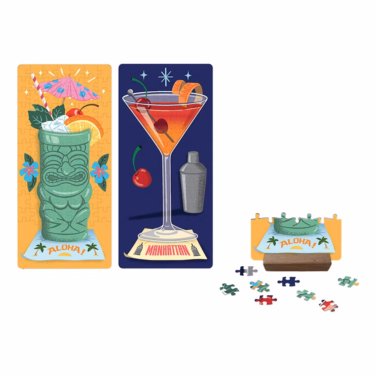Vad är bäst: En avslappnad Piña colada eller en elegant Manhattan? Välj din föredragna cocktail och utmana din vän på en intensiv pusselduell!