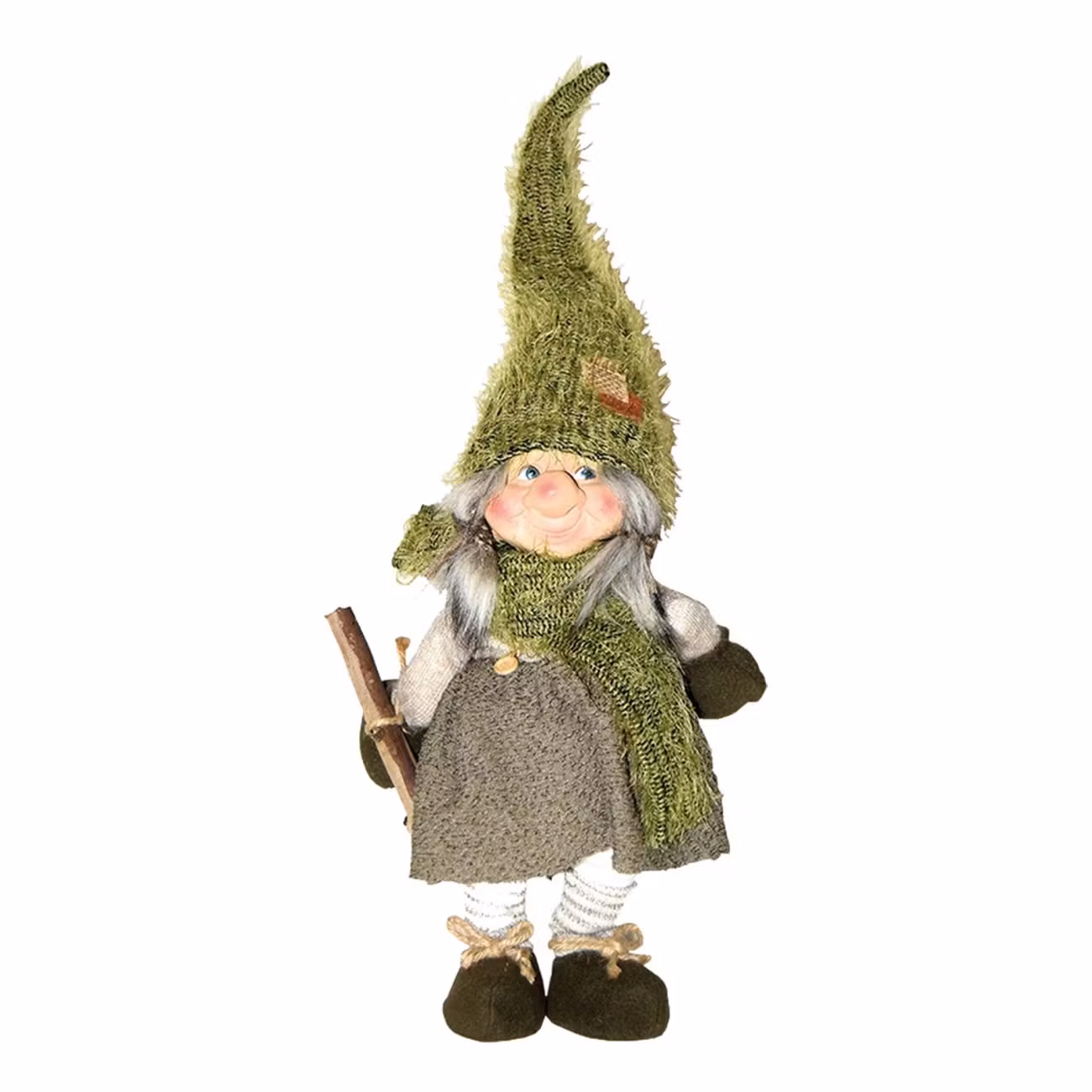 Dekoration Grönt Troll är ett stående troll med gråa kläder och grön halsduk och mössa. Dockan är tillverkad i polyester, plast och polystone. Mäter ca 26 cm hög.