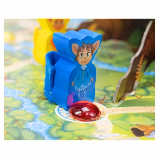 Det stora spelbrädet bjuder på roliga äventyr. Spelpjäserna är söta figurer av trä, med ryggsäckar av tyg!