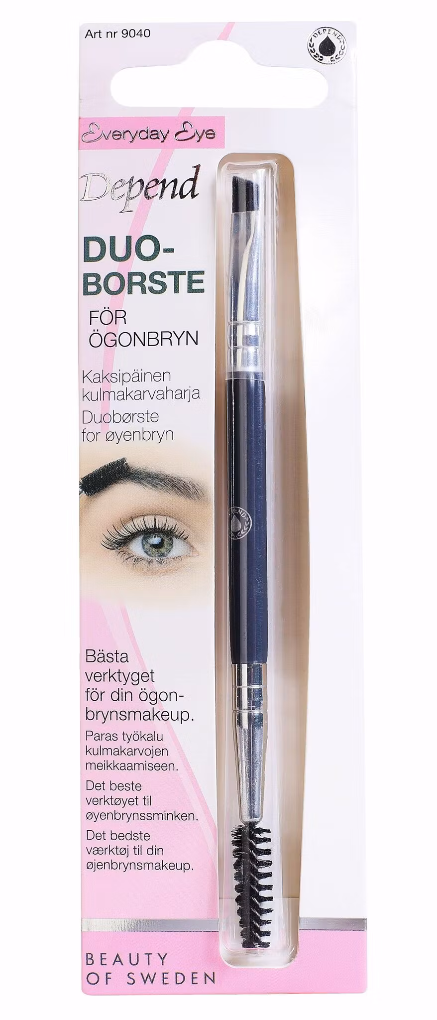 Bästa verktyget för din ögonbrynsmakeup. Snedskuren pensel för att applicera tex ögonbrynsskuggor och cylinderformad borste för att borsta och fördela färgen.
