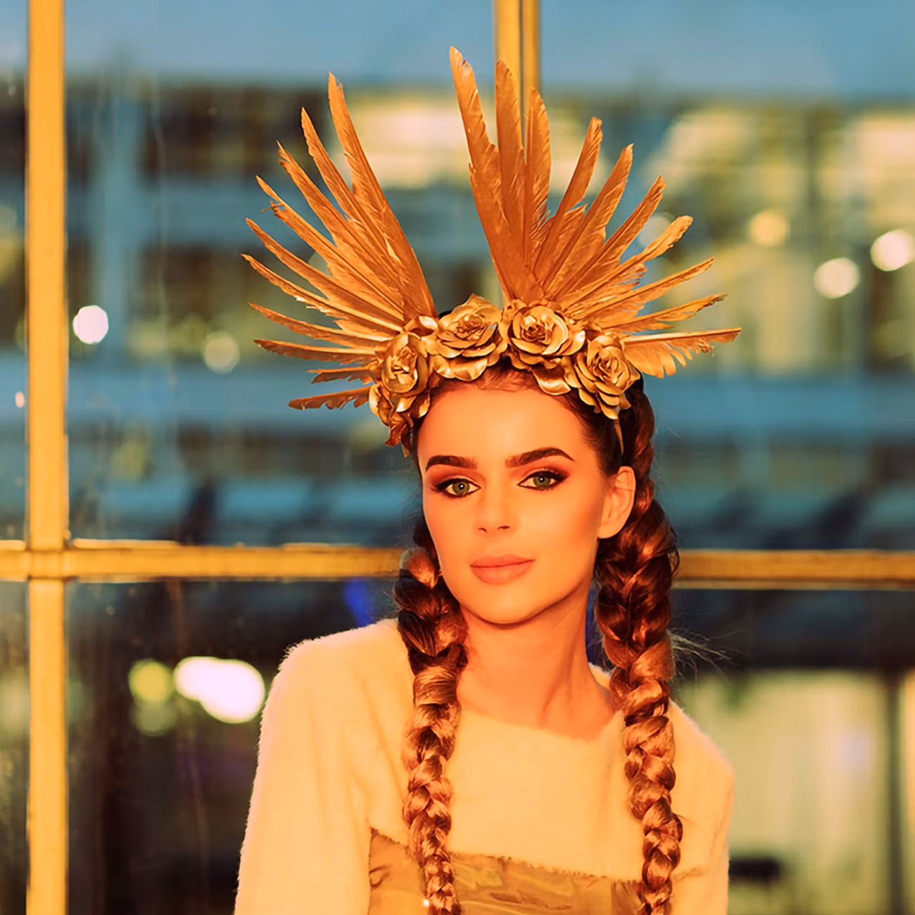 Ge dig själv en gudalik look med denna mäktiga skapelse som med sin holografiska framtoning både bländar och imponerar. En ståtligare krona får man leta efter!