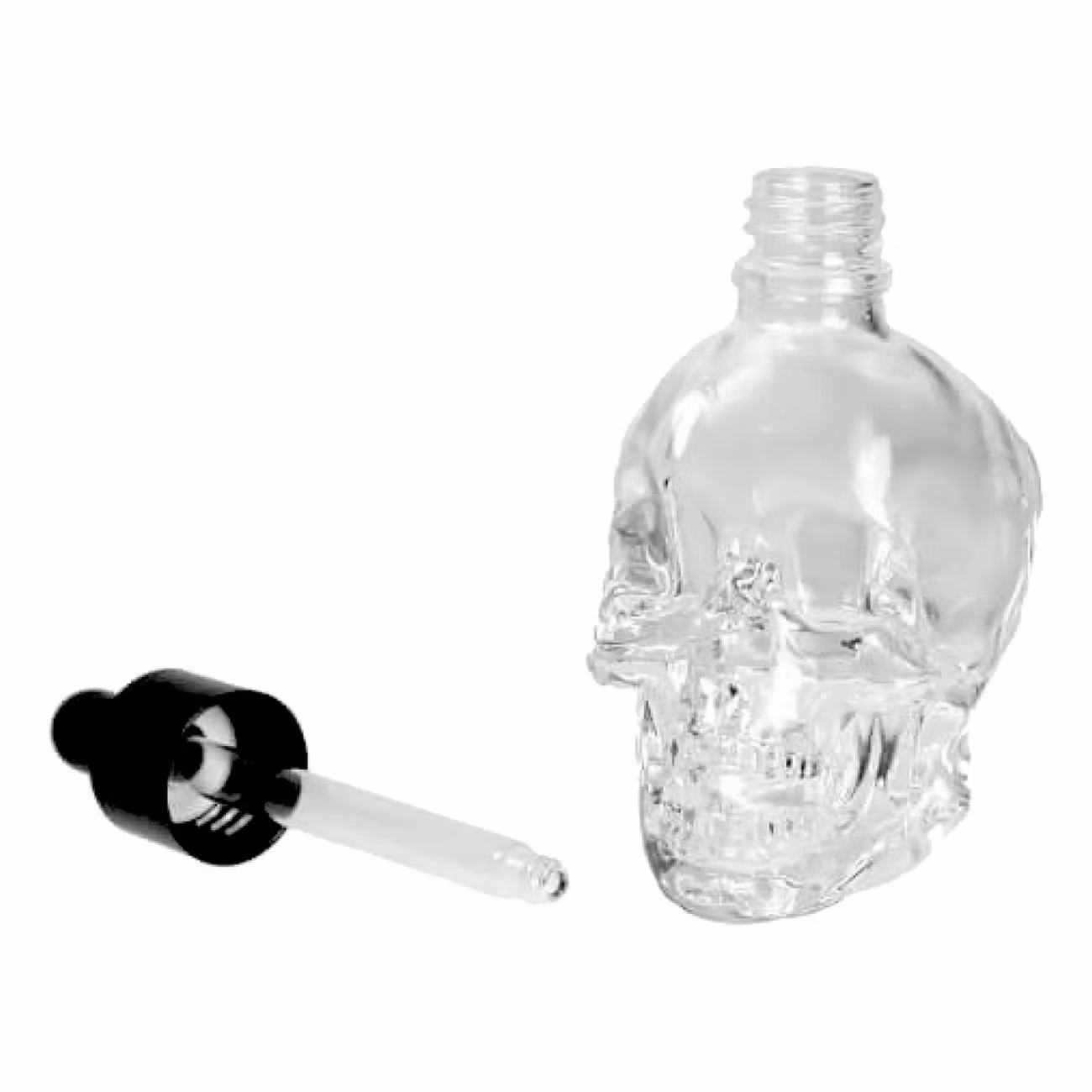 Droppflaska Dödskalle är en liten droppflaska i form av en döskalle med händig drinkpipett integrerad i korken. Perfekt för alla slags smakhöjare som är i flytande form, för både matlagning och drinkar.