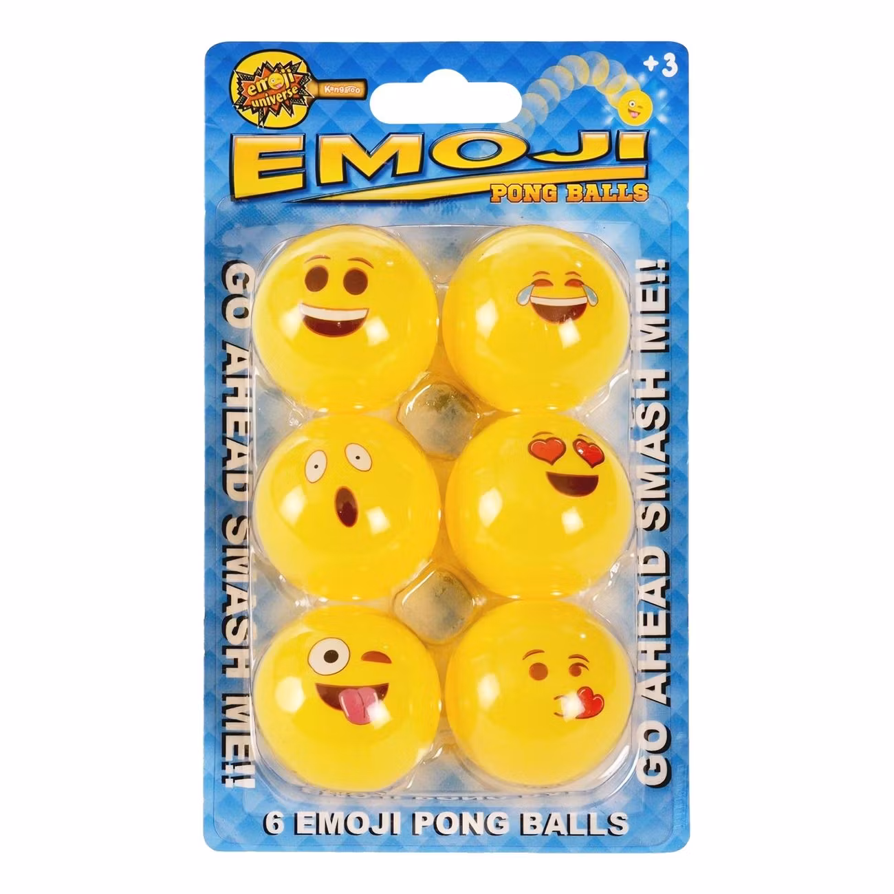 Emoji Pingisbollar innehåller 6 stycken gula pingisbollar i plast med olika ansiktsuttryck.