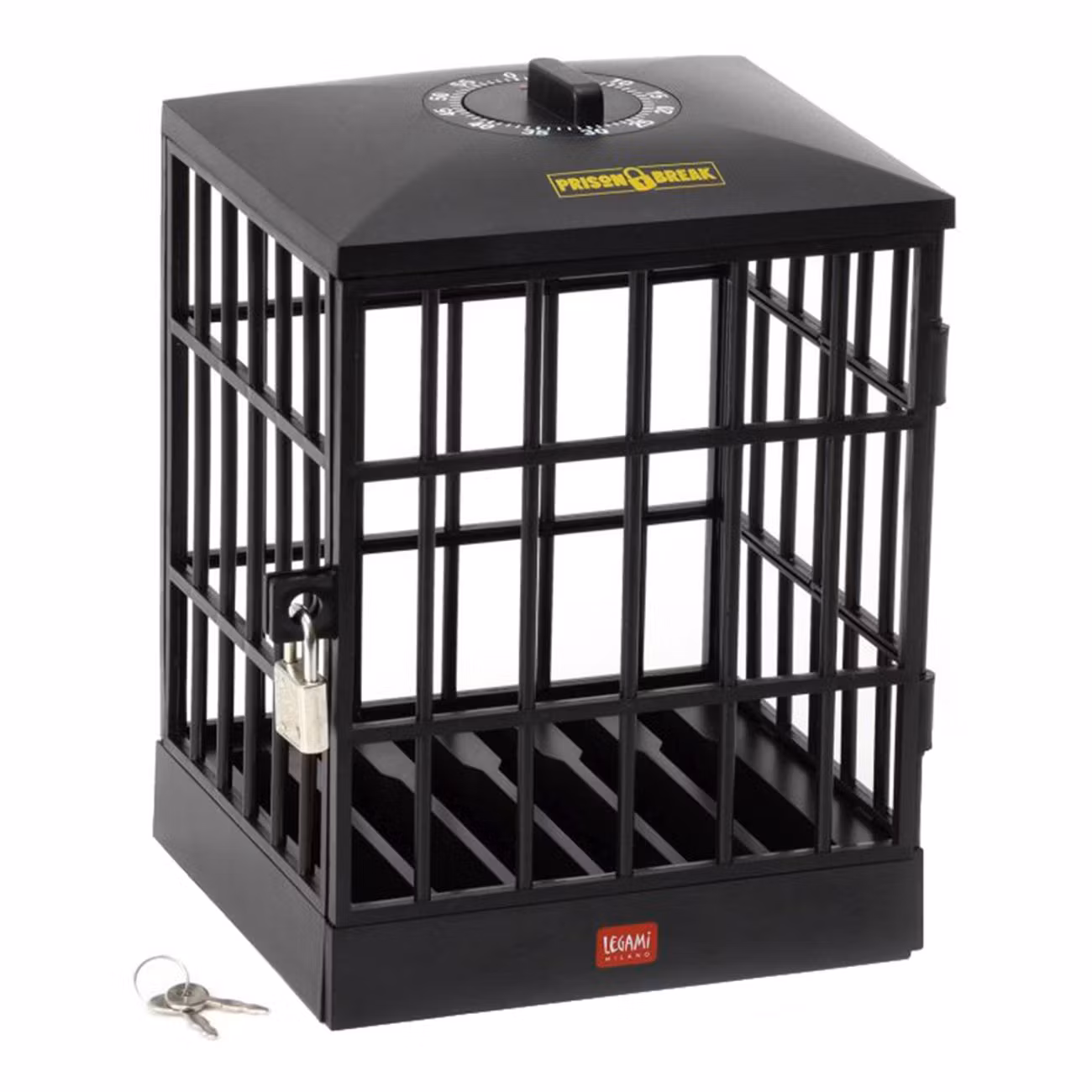 Fängelse för Mobiltelefoner är en rolig och smart pryl för personer som behöver koppla bort hjärnan från mobilens ständiga frestelser. Buren har integrerad timer samt 2 nycklar och du är utsedd till fängelsevakt. Kör hårt!