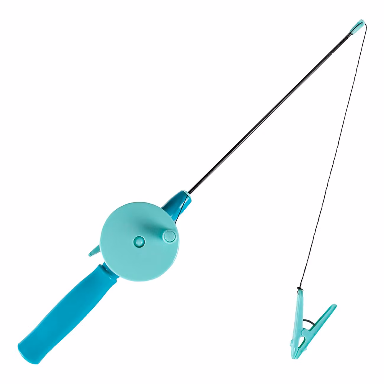 Fiskespö till Fiskedamm levereras styckvis tillsammans med lina och en klädnypa. Fiskespöt är tillverkat i plast och mäter cirka 47 cm stort. Används allra helst till barnkalasets fiskedamm.