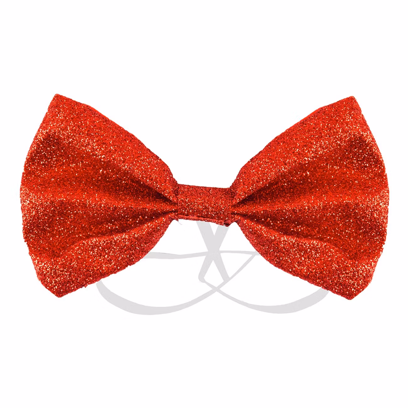 Fluga Glitter Röd inkluderar en röd fluga med en glittrig yta. Flugan är tillverkad i polyester. Den är 12 x 7 cm stor och väldigt enkel att fästa runt halsen.