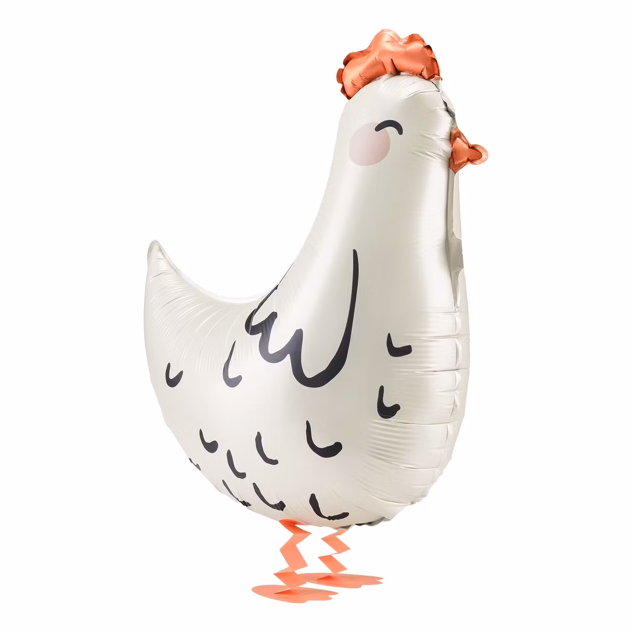 Folieballong Höna Vit är en supersöt ballong med både näbb, vingar och rosiga kinder. Kan fyllas med luft eller helium; med helium har den en flygtid på upp till 7 dagar. Ballongen mäter ca 48 x 60 cm.