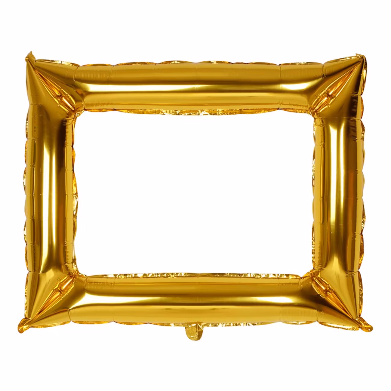 Folieballong Selfieram Guld är en ballong som föreställer en stor guldfärgad ram som gästerna kan hålla upp för att ta festliga bilder med. Ballongen fylls endast med luft eftersom att den ej svävar med helium.