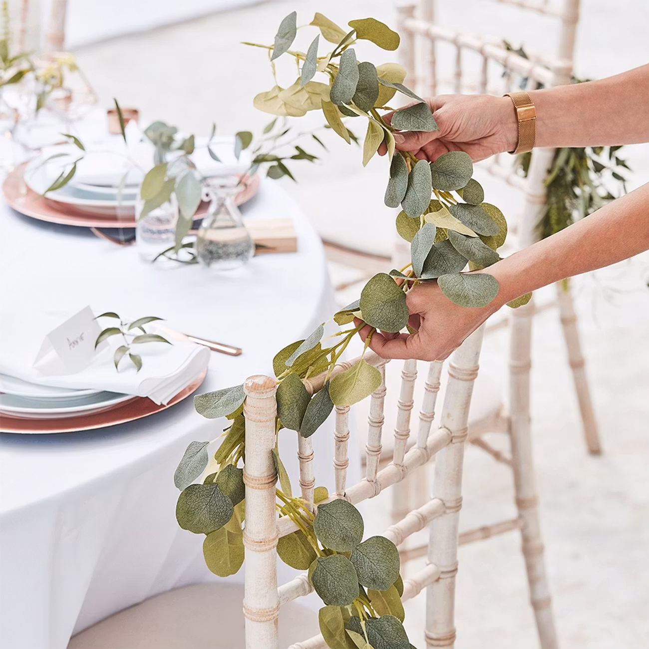 Girlang Eucalyptus Grön innehåller är en vacker girlang med gröna blad. Girlangen är tillverkad i plast och den är 190 cm lång. Du hänger enkelt upp den mellan två skruvar eller med hjälp av lite tejp.