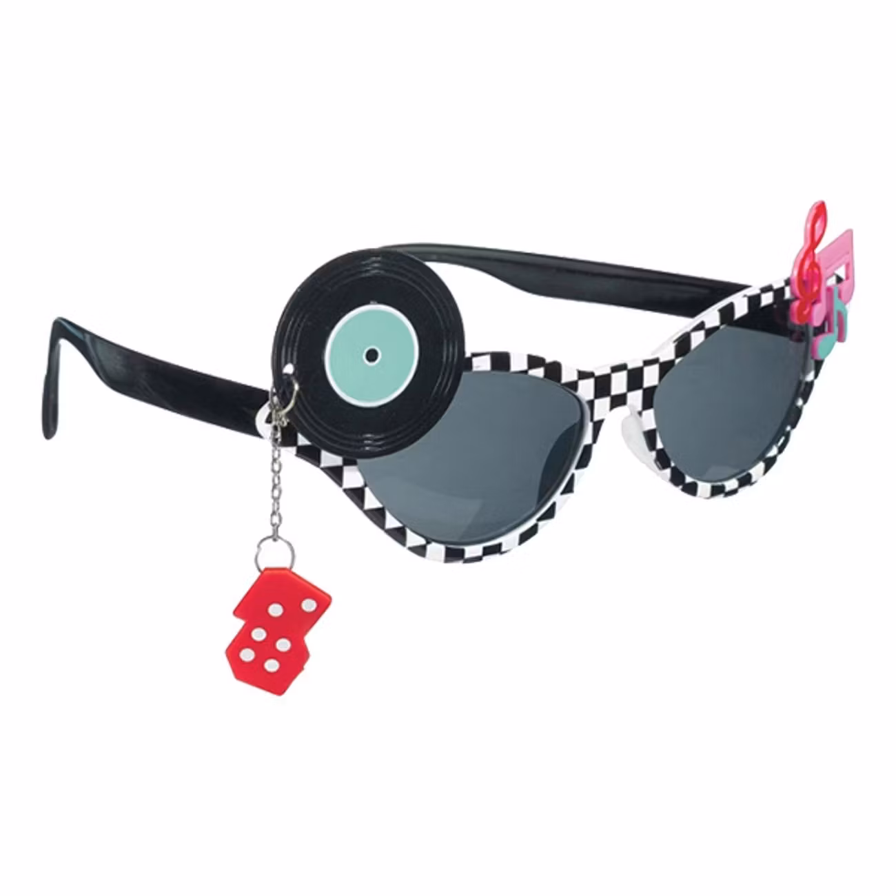 Satsa på 50-talet på nästa fest! Musiken spelas på vinylvarv och favoriterna som Elvis Presley, Wanda Jackson och Buddy Holly ljuder i högtalarna. Då sitter självklart dessa Rockabilly-solglasögon som gjutna på dig.