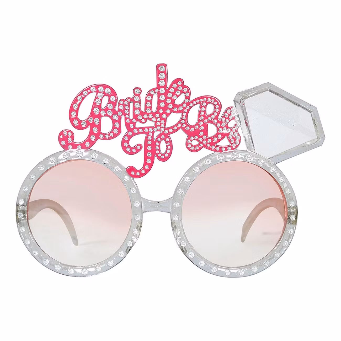 Ta på dig dessa fabulöst glittriga glasögon och låt alla få veta vem som står i centrum! Med en gnistrande diamant och texten "Bride to Be" i strass är du redo att glida in på möhippan som en superstar – oavsett om det blir dansgolv, brunch eller bubbel på stranden.