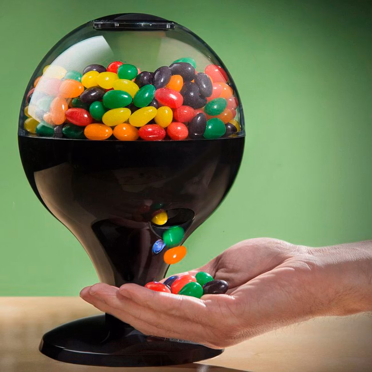 Aldrig har det varit så lätt och så roligt att hålla favoritgodiset fräscht! Fyll bara på behållaren med din absolut godaste godis och veva lätt med handen framför dispensern så förser den dig med godis alldeles av sig självt! Men en varning: ställ inte dispensern på ditt skrivbord på jobbet, så länge du inte vill att alla dina sötsugna kollegor ska vallfärdas till ditt skrivbord!