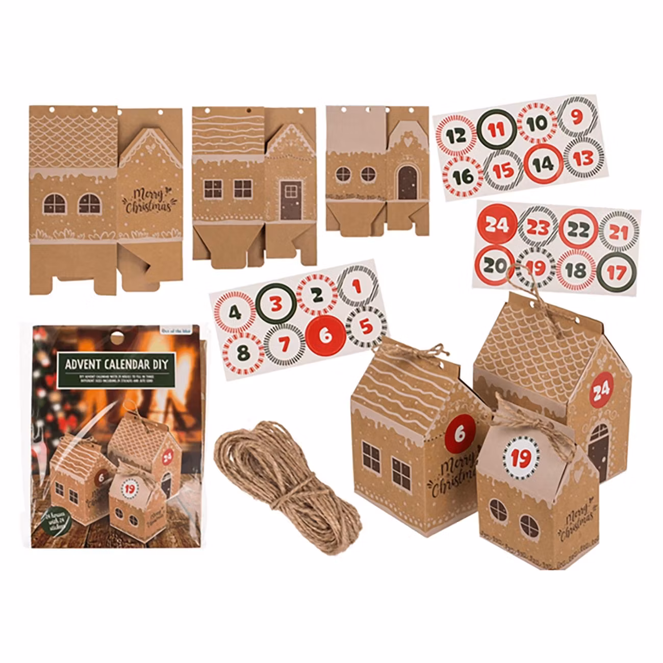 Gör Din Egen Adventskalender inkluderar tjugofyra stycken små pepparkakshus av papper som låter dig själv fylla dom med roliga klappar för att skapa din egna julkalender. Medföljer gör även klistermärken med siffrorna 1 till och med 24 för att märka upp dagarna.