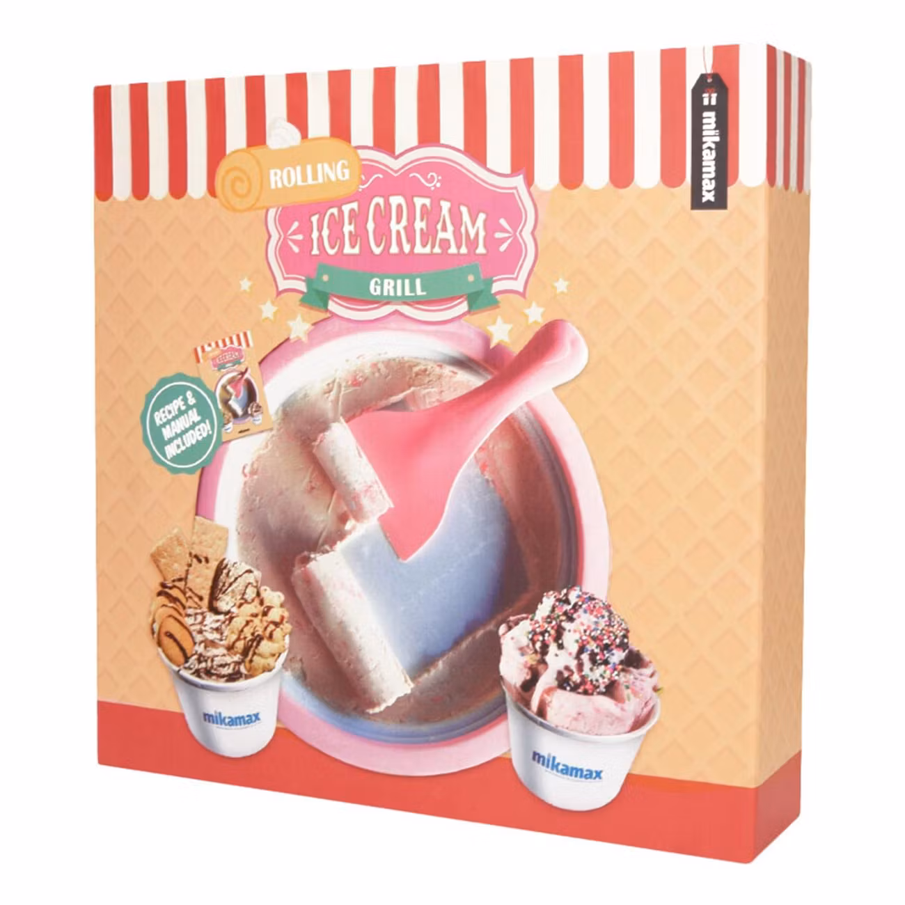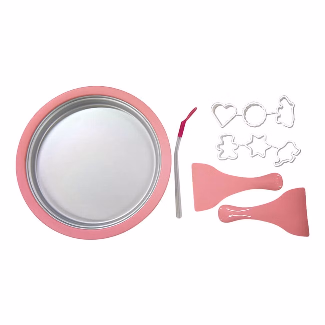 Förpackningen innehåller flera recept för att skapa olika smaker, en form, två spatlar, ett sugrör/sked och 6 olika kakformar så att du kan göra flera glassfigurer.