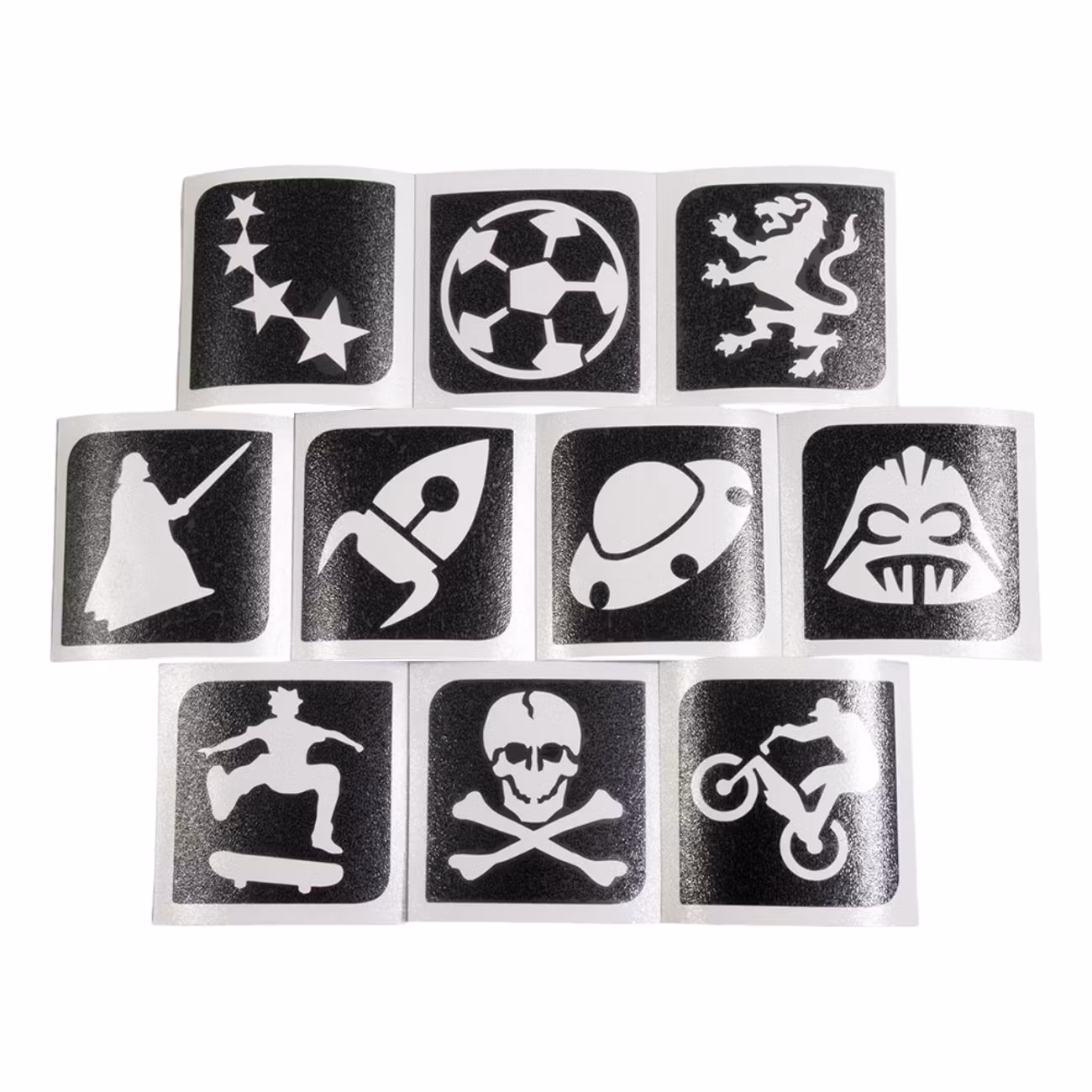 Mer action än så här blir det inte! Rada upp de små gästerna på kalaset för att välja en valfri glittertatuering med garanterat coolt motiv!