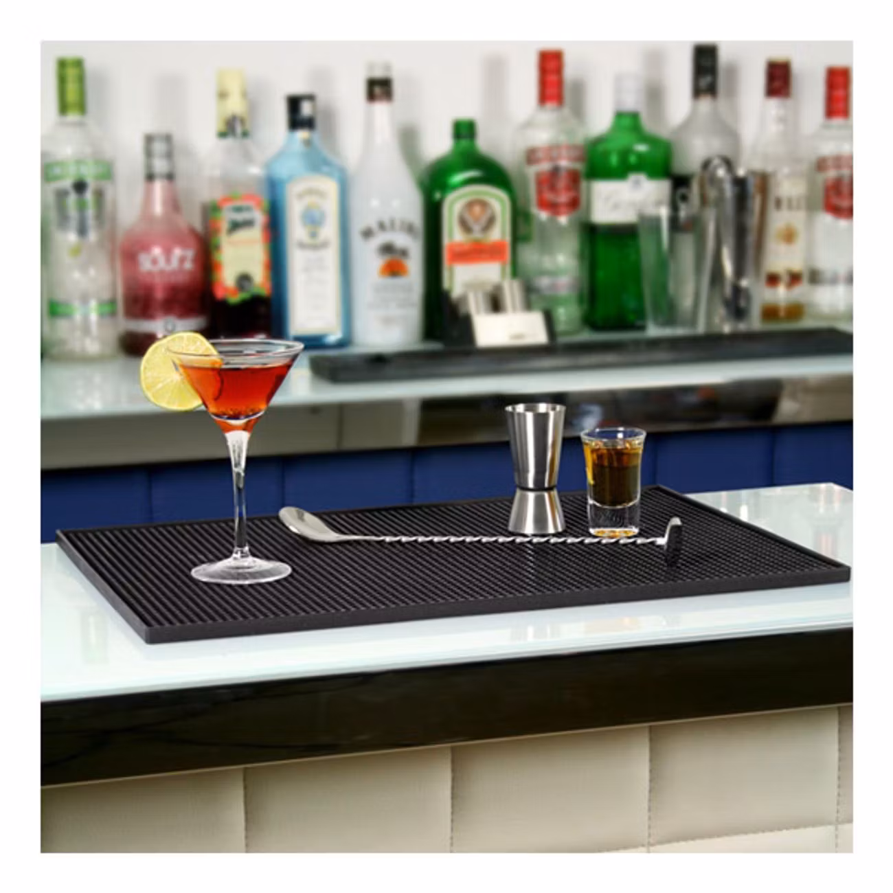 flexibel, samtidigt som den håller sig på plats på bardisken utan att flytta på sig. Mattan tar hand om glasringar och frätande citronjuice, så att du kan njuta av att dricka med dina vänner utan att