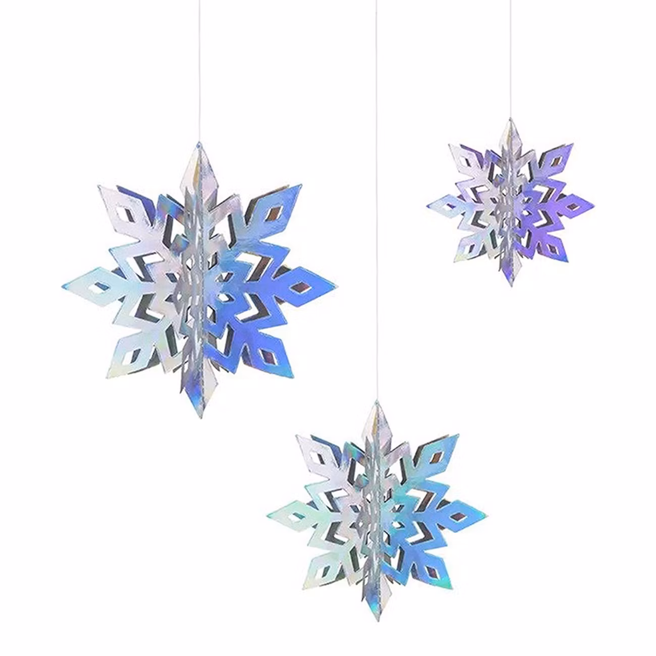 Hängande Snöflingor består av 6 stycken snöflingor i holografiskt print med olika storlekar. En supertjusig juldekoration att hänga upp i taket. Snöre ingår.