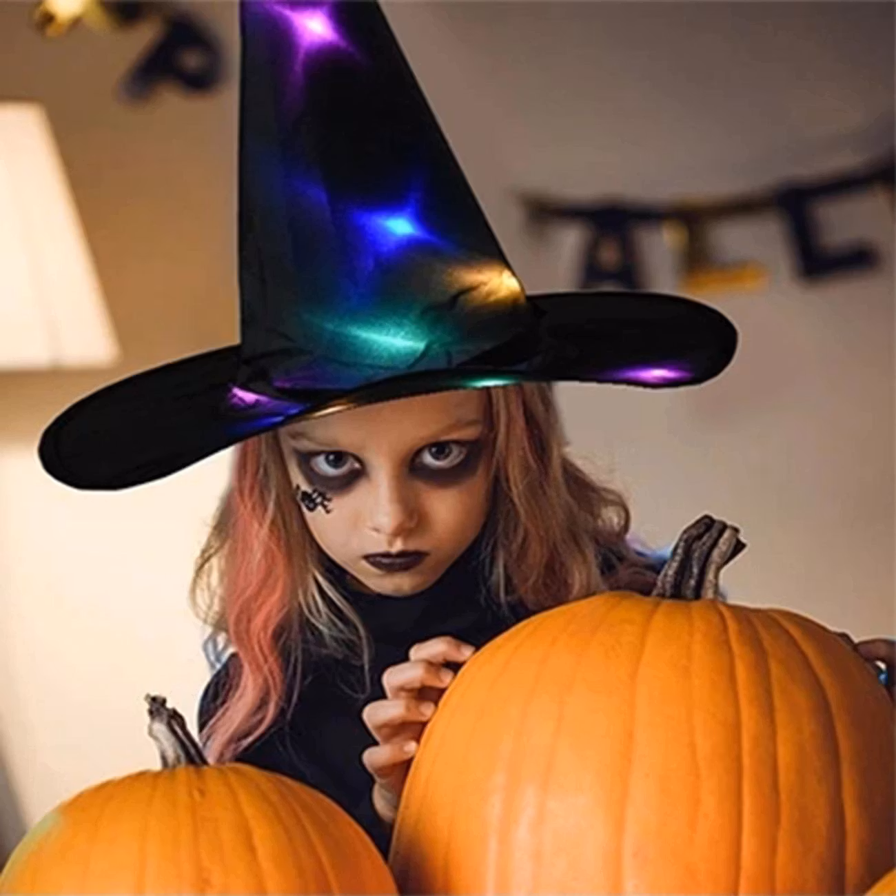 Häxans hatt är definitivt en av hennes viktigaste ägodelar, därför är det viktigt att den är snygg! Den här hatten hade däremot fått vilken häxa som helst att misstänka svart magi – för den kommer med LED-belysning! Så varför inte använda hatten som en snygg dekoration till nästa halloweenfest?