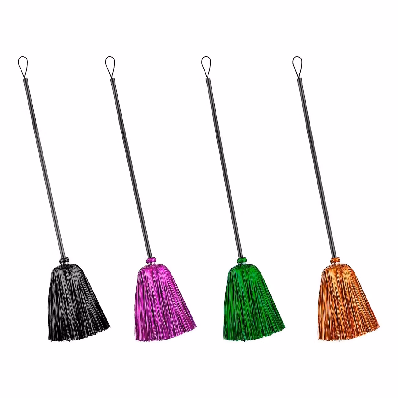 Kvasten är häxans viktigaste redskap och är du en lyxig häxa vill du så klart ha en lyxig kvast, och det ska gärna vara en kvast som glittrar och skimrar! Den här kvasten finns i tre olika färger så att du välja en kvast som matchar din häxdräkt. Perfekt när det är dags att åka till Blåkulla eller gå på en halloweenfest!