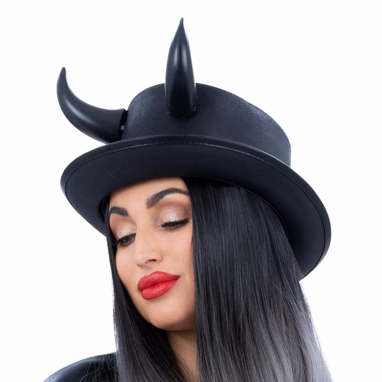 Bli kvällens mest sofistikerade djävul med denna stilfulla höghatt med horn! Ett utmärkt val för dig som vill byta ut de klassiska djävulshornen mot något mer elegant. Den passar perfekt ihop med en djävulsklänning eller kostym, och lyfter din djävulsoutfit till en ny och mer fancy nivå!