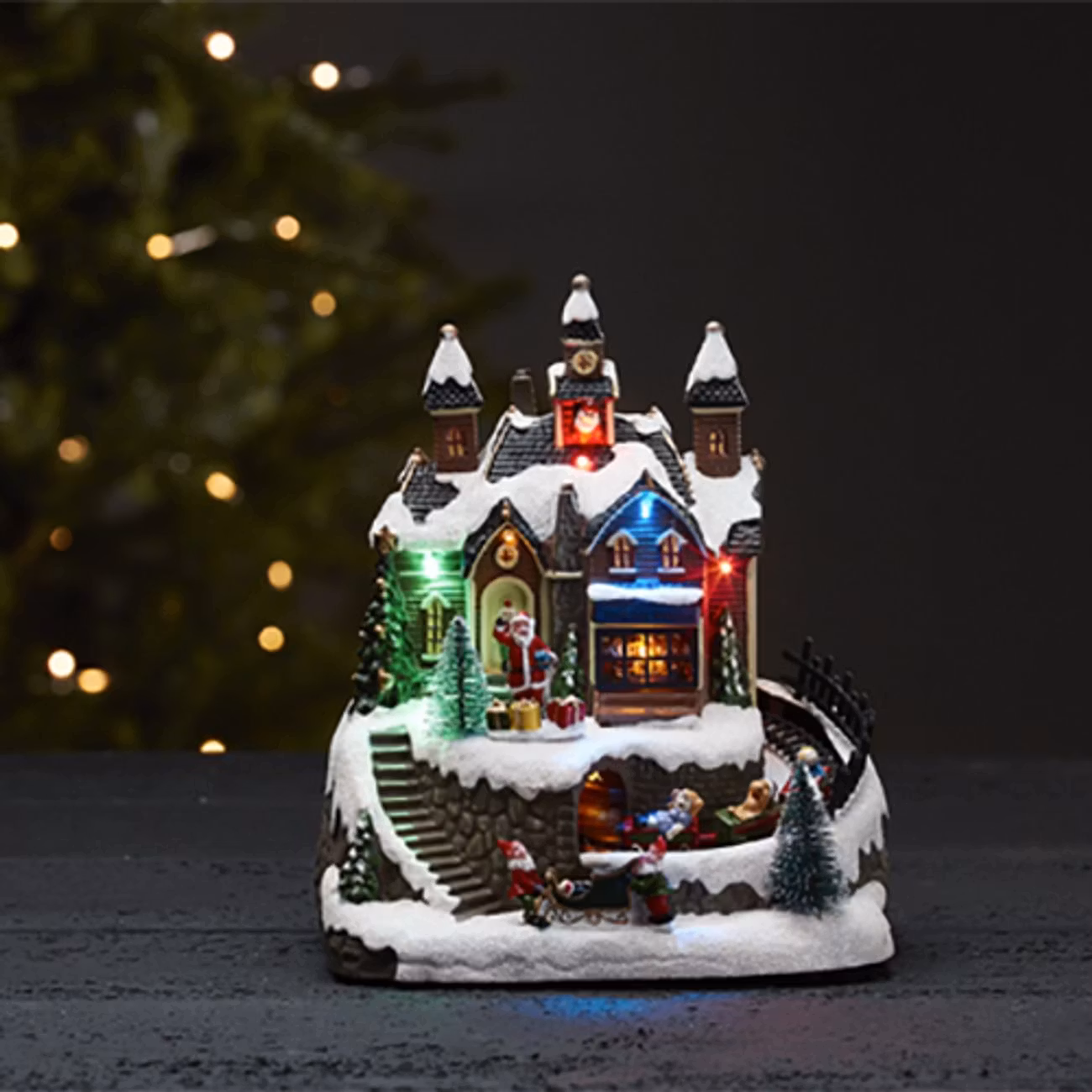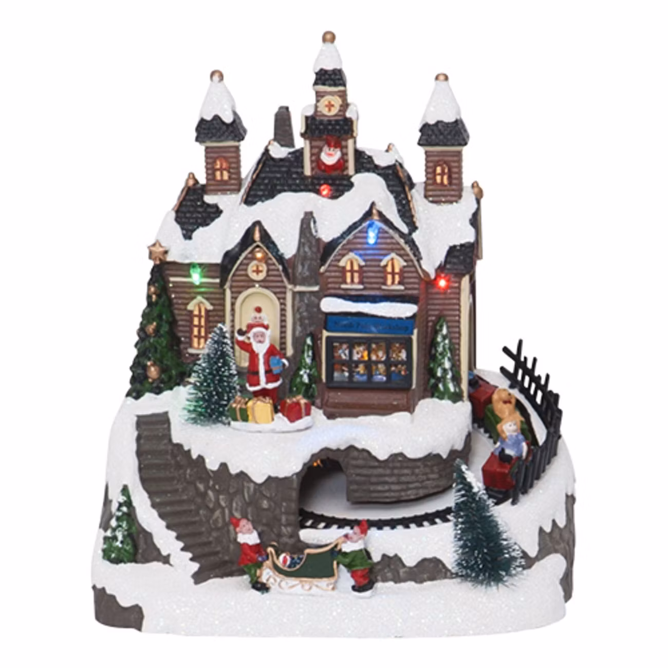 Locka fram den oslagbara julkänslan med denna julby i form av en tågstation med tomtar, snötäckt hus och granar. Dekorationen lyser i tre olika färger och har ett tåg som åker runt och runt. En mycket vacker liten juldekoration med andra ord...