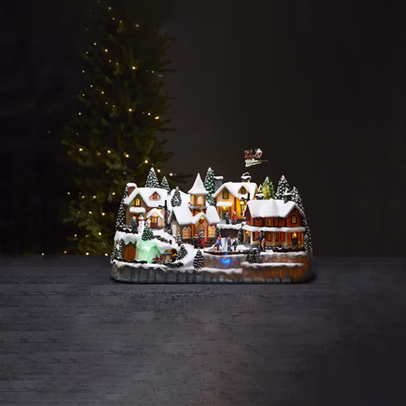 Att det här är juldekorationernas Rolls-Royce råder det inga tvivel om. Med 3 mekaniska delar som rör sig får vi se tåg, skridskoåkande barn och tomtens släde röra sig till tonerna av hela 8 jullåtar som försiktigt försätter hemmet i en supermysig atmosfär. Med sina 31 LED-ljus behöver du inte vara orolig för decembermörkret utanför fönstret - det här är precis vad som krävs för att skapa en riktigt julig stämning vid granen.