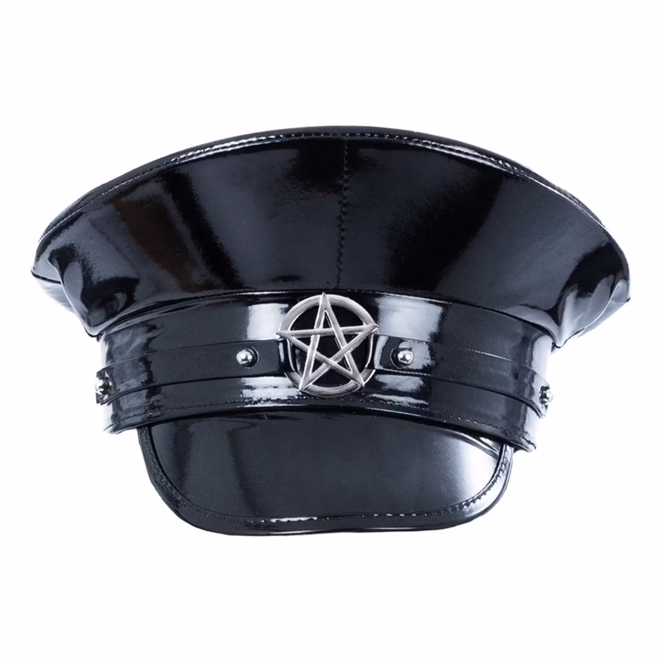 Denna svarta, blanka kaptenshatt med pentagram är klockren om du vill få till en riktigt mystisk look inför festen! Passar perfekt för Halloween, ravepartyt eller när du känner för att utföra en mystisk ritual en helt vanlig dag.
