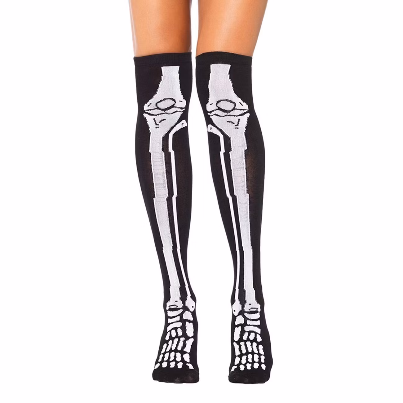 Kör all-in med din fräcka skelett-look inför halloweenfesten och komplettera din outfit med dessa stencoola skelettstrumpor. Perfekt till din kjol eller klänning. Strumporna är av hög kvalitet och passar givetvis även till vardags.