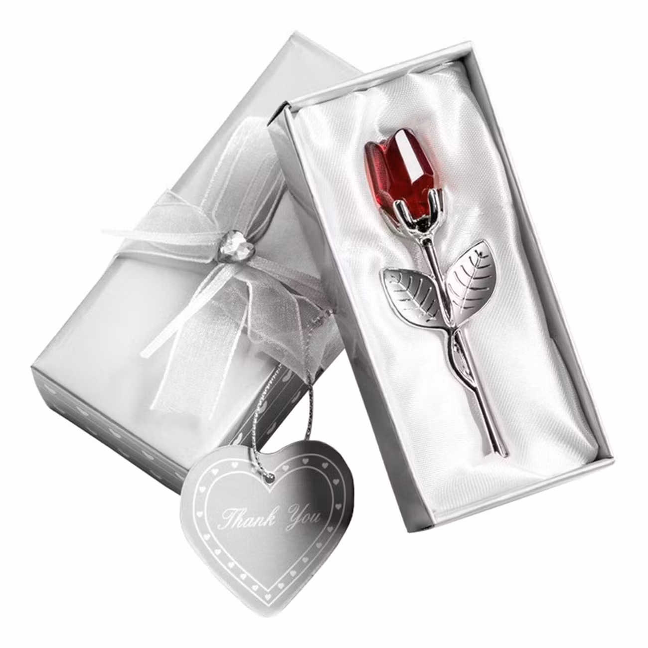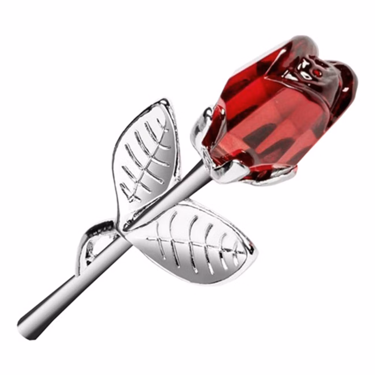 Kristallros är en vacker röd ros i kristall. Rosen levereras i en silverfärgad kolfiber-presentask. Den är 15 x 5 x 2 cm stor. På asken finns en hjärtformad etikett.