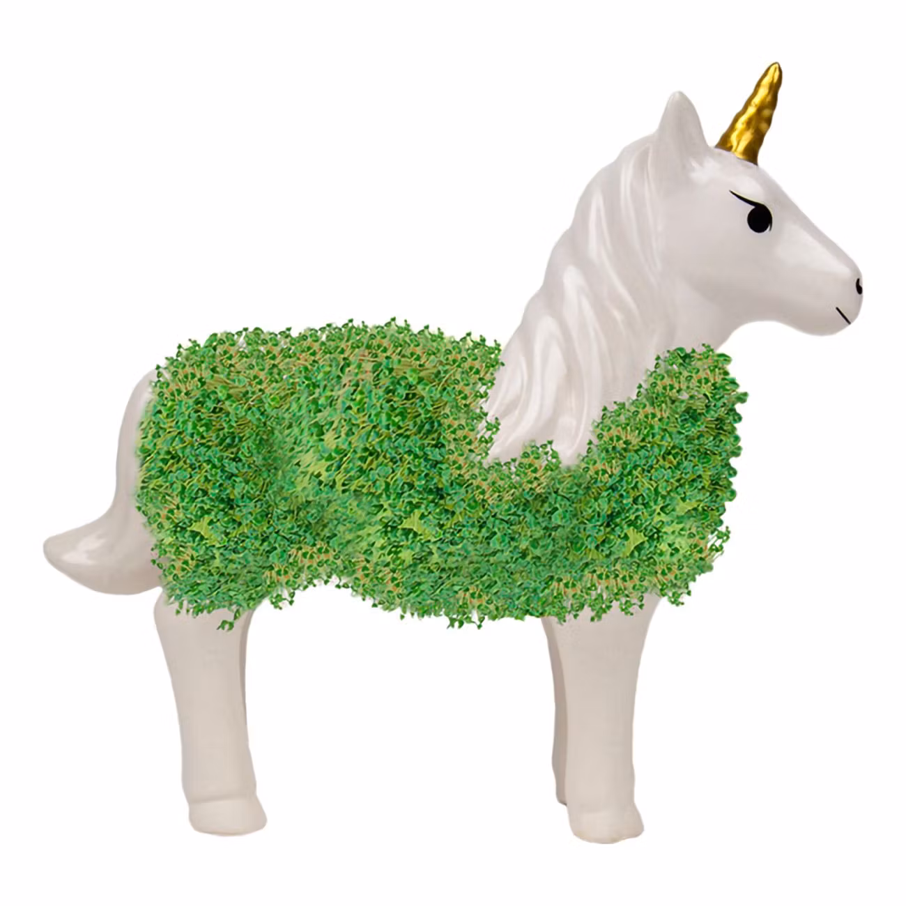 När det kommer till sagoväsen så måste ändå den magiska enhörningen knipa första plats. Med sitt ståtliga horn och fagra leende är den synnerligen lättälskad, och nu kan du även addera grönskande päls på ditt favoritdjur! Med frön, vatten och kärlek förvandlar du din enhörning till hemmets vackraste kruka! Hur häftigt låter inte det?