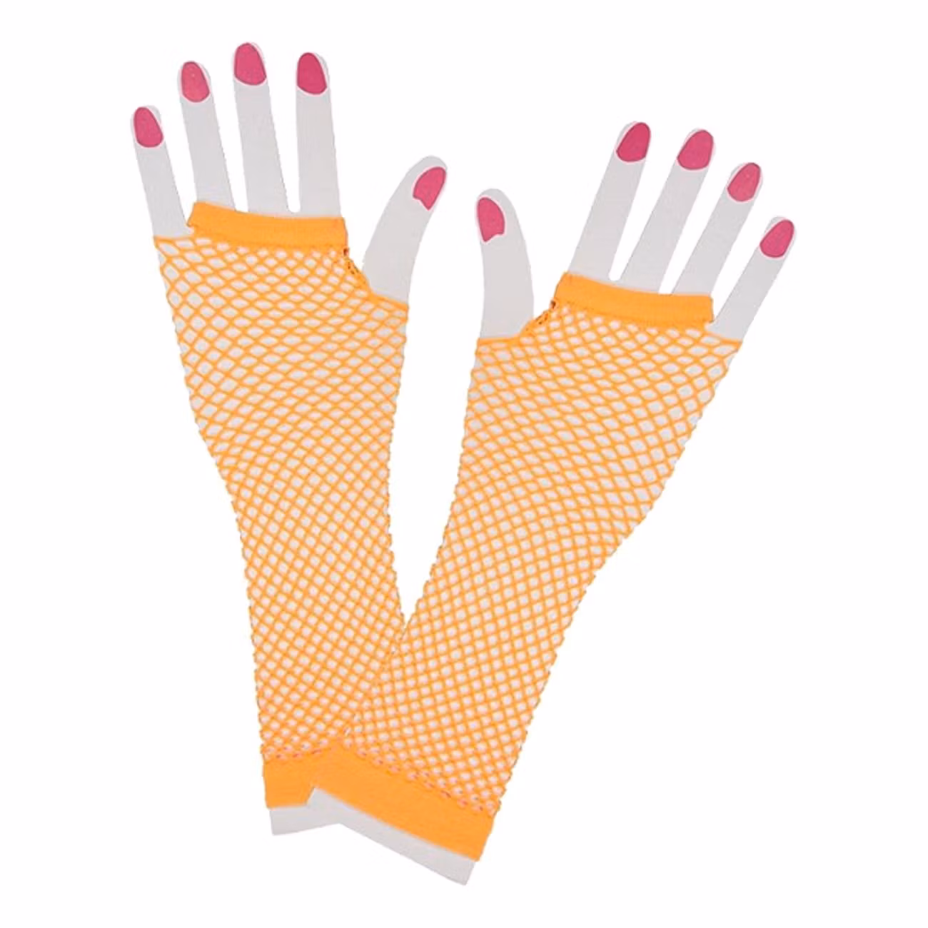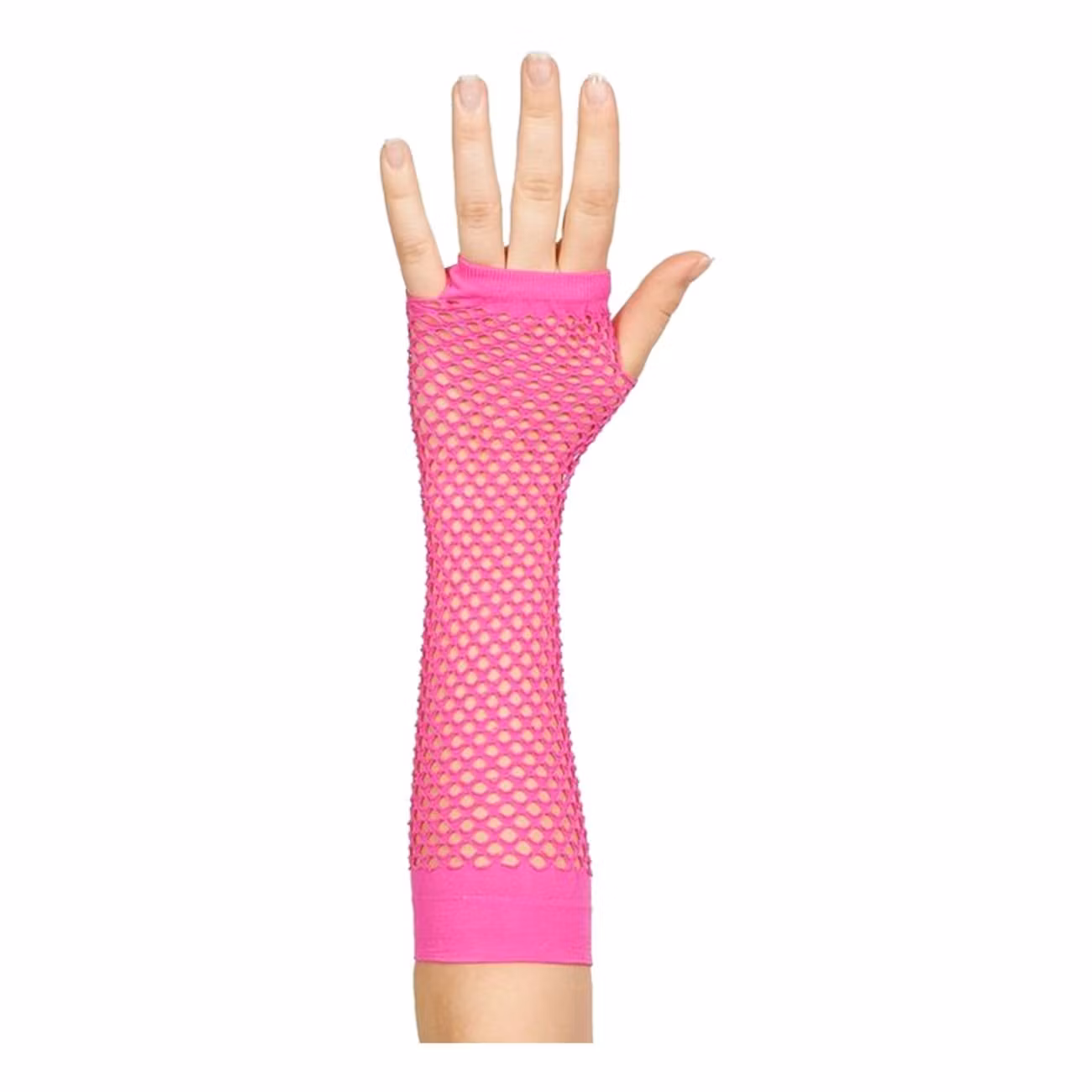 Coola långa fingerlösa näthandskar i fyra olika färger. Handskarna är färgade med en speciell UV-färg som lyser i direkt UV-ljus (t.ex på krogen eller under en UV-lampa). Säljes parvis med två i ett paket.