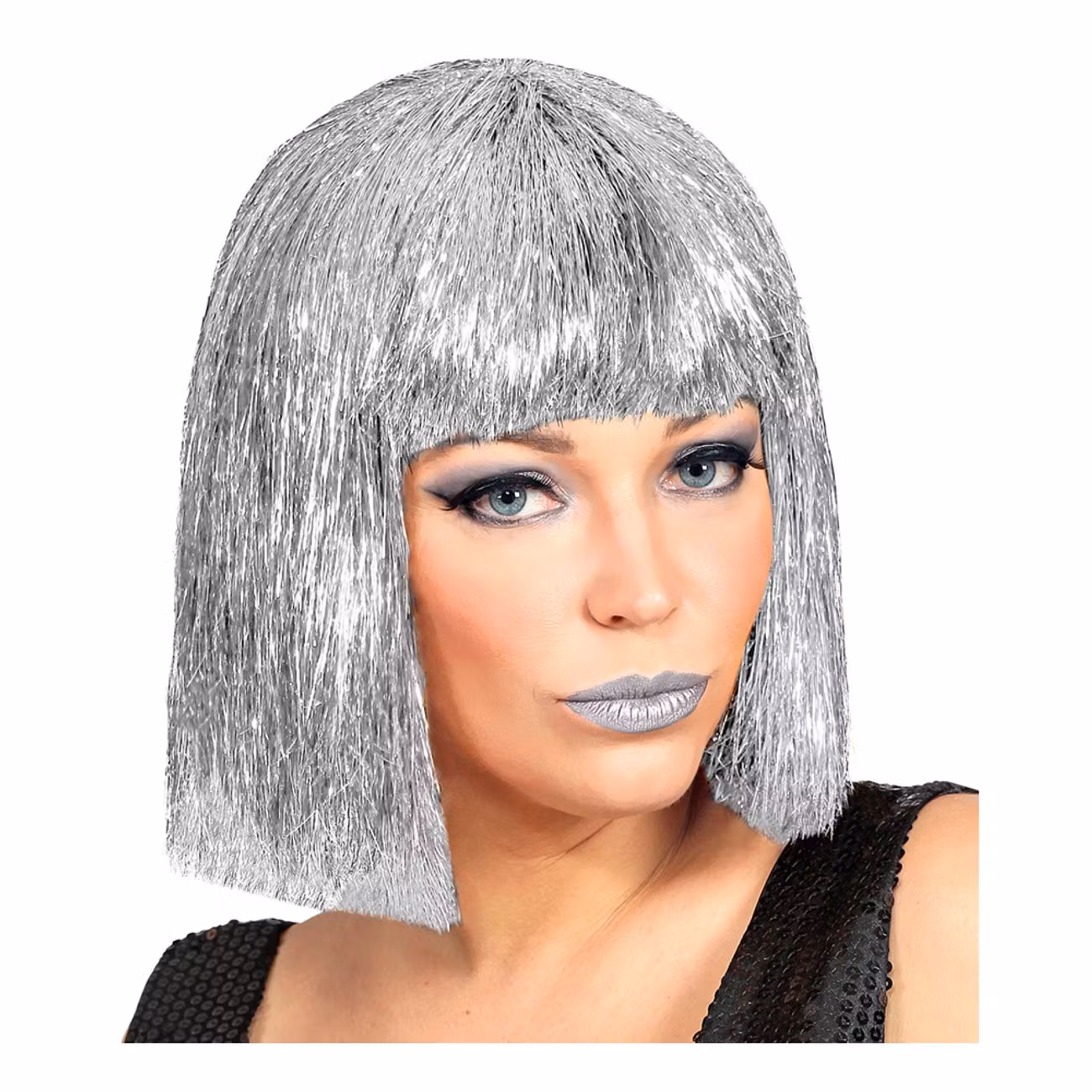 Las Vegas Peruk Silver levereras styckvis och kommer i storleken One size för vuxna. Peruken är tillverkad i plast och sitter snyggt och skönt på ditt huvud - hela kvällen lång, oavsett vilken typ av fest det är.