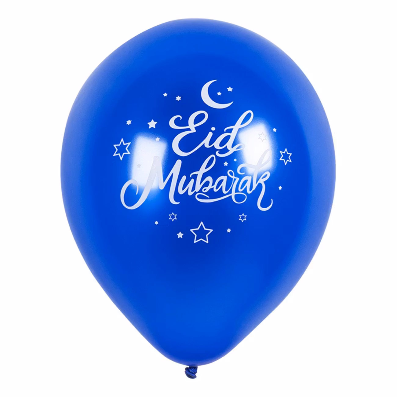 Latexballonger Eid Mubarak inkluderar sex latexballonger i blått och guld med texten "Eid Mubarak" på bägge sidor. De går utmärkt att fylla upp dem med helium för en svävande effekt, vilket du självklart hittar hos oss!