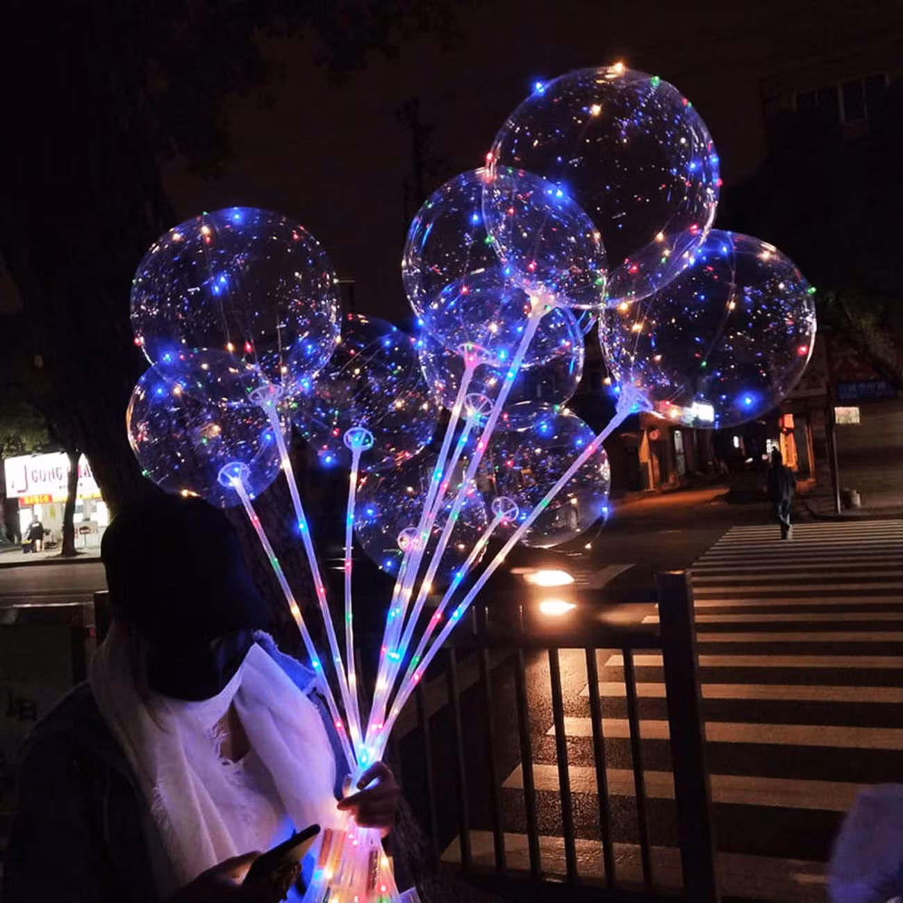 LED Ballong på Pinne är en transparent ballong med ballongpinne samt en ljusslinga som träs över ballongen. Ljusslingan har två ljuslägen och du väljer med ett knapptryck om slingan ska lysa statiskt eller blinka. Ballongen mäter 20 cm uppblåst och bör fyllas med luft. Ballongpinnen mäter totalt 70 cm och ljusslingan mäter 3 meter. Ljusslingan kräver 3 st AA batterier som ej medföljer. Blås upp ballongen helt tills att det inte finns några veck kvar på kanterna för bäst effekt.