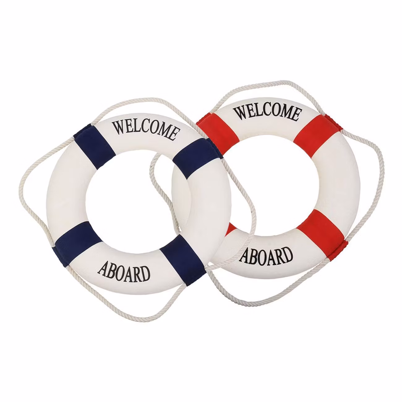 Livboj Dekoration är en dekorativ livboj som mäter 36,5 cm. Livbojen har "Welcome aboard" skrivet på ena sidan i svart text. Livbojen är tillverkad av frigolit men har ett tunt tyg i polyester på utsidan och rep som gör att du enkelt kan hänga upp livbojen. Livbojen finns i rött eller blått utförande. Säljes styckvis.