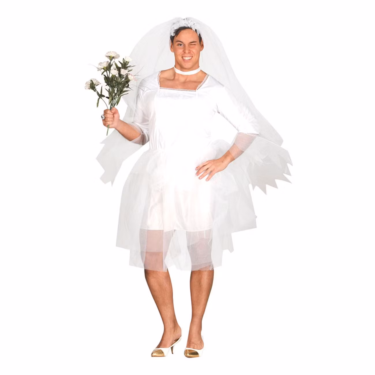 Vem har egentligen bestämt att det är bruden som ska bära en fin vit klänning när brudgummen bara få ha på sig en tråkig mörk kostym. Nej, våga bryta gamla mönster! Den här fina brudklänningen till en man passar perfekt att använda på maskerader eller varför inte sätta den på den blivande brudgummen när ni överraskar honom med en svensexa.