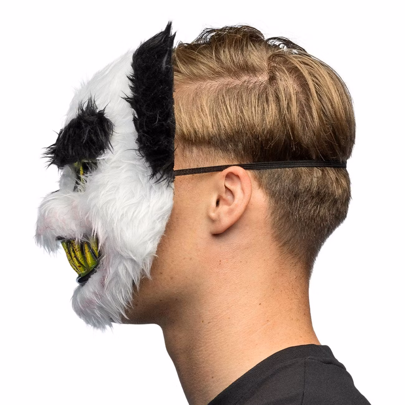 Pandan – den svartvita sötnosen som alla älskar… eller? Den här masken tar allt det gulliga och vrider upp skräcknivån till max. Med sina stirrande gula ögon och kusliga leende är detta en panda som definitivt inte nöjer sig med bambu. En garanterad snackis på maskeraden och ett måste för dig som gillar kontrasten mellan sött och riktigt obehagligt.