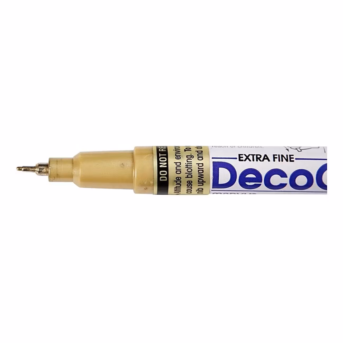 Metallpenna Guld är en permanent tuschpenna i skimrande guld med en tunn och fin spets på 0,8 mm som kan användas som en dekorationspenna. Spritpennan passar alla slags material. Metallpennan rekommenderas inte att användas av barn.