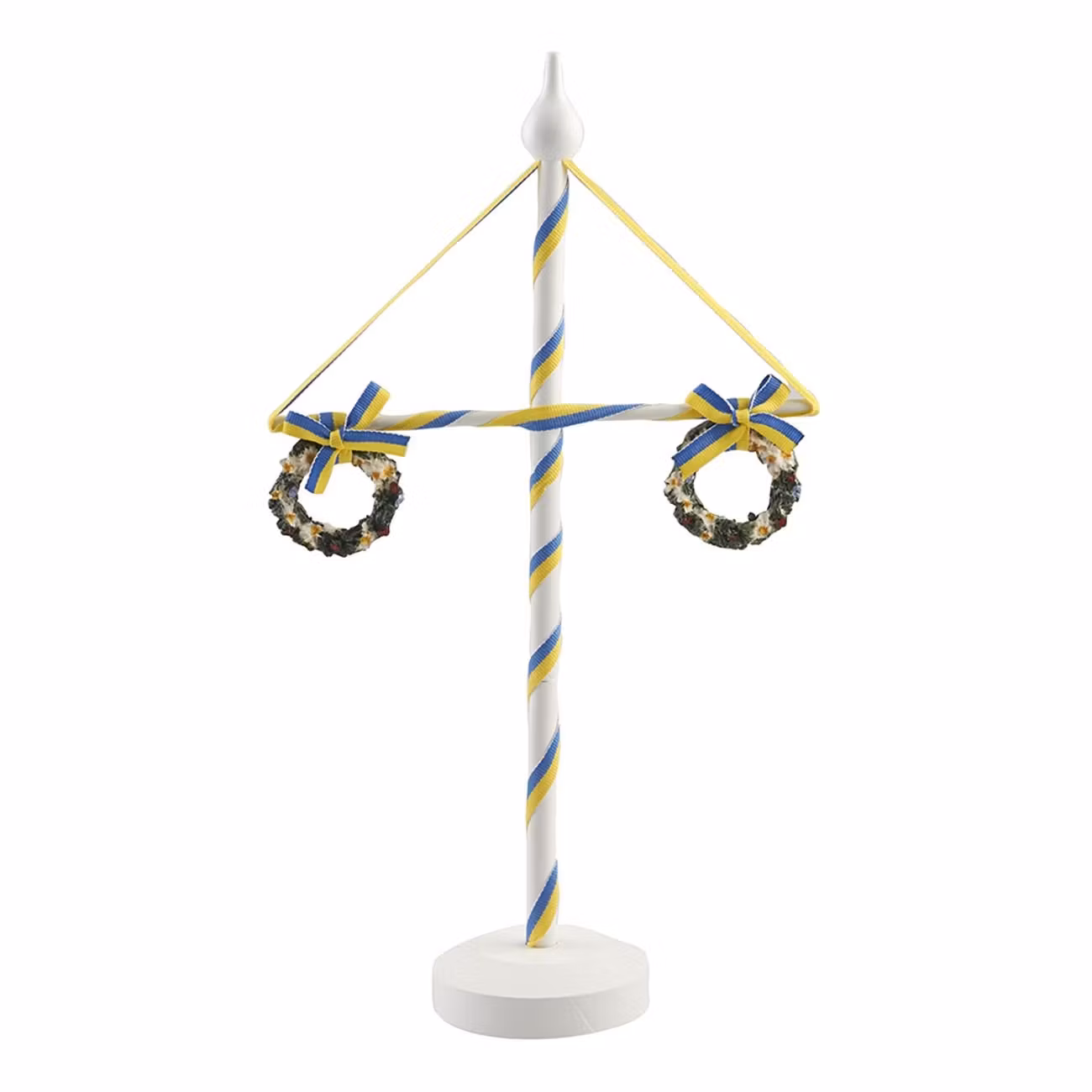 Midsommarstång Vit i Trä levereras styckvis och är tillverkad i trä. Midsommarstången mäter antingen 24 eller 37 cm hög och passar riktigt bra in på matbordet eller som dekoration i fönstret.