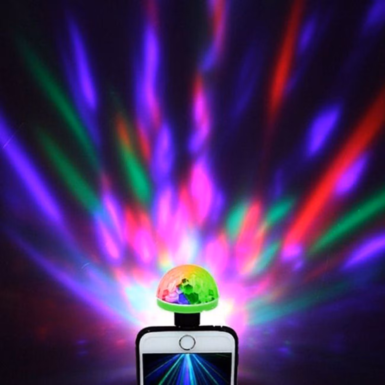 Mini USB Discolampa är en smart liten pryl att sätta i bilen eller i mobilen när du vill ha lite partyparty. Lampan levereras styckvis och innehåller fyra mindre lampor som blinkar och lyser i olika härliga färger. Lampan blinkar upp till 5-10 meter och reagerar på ljud. Är det exempelvis snabb bas, då blinkar lampan snabbt. Lampan drivs av LED-lampor och kan pluggas i allt som har en USB-port.