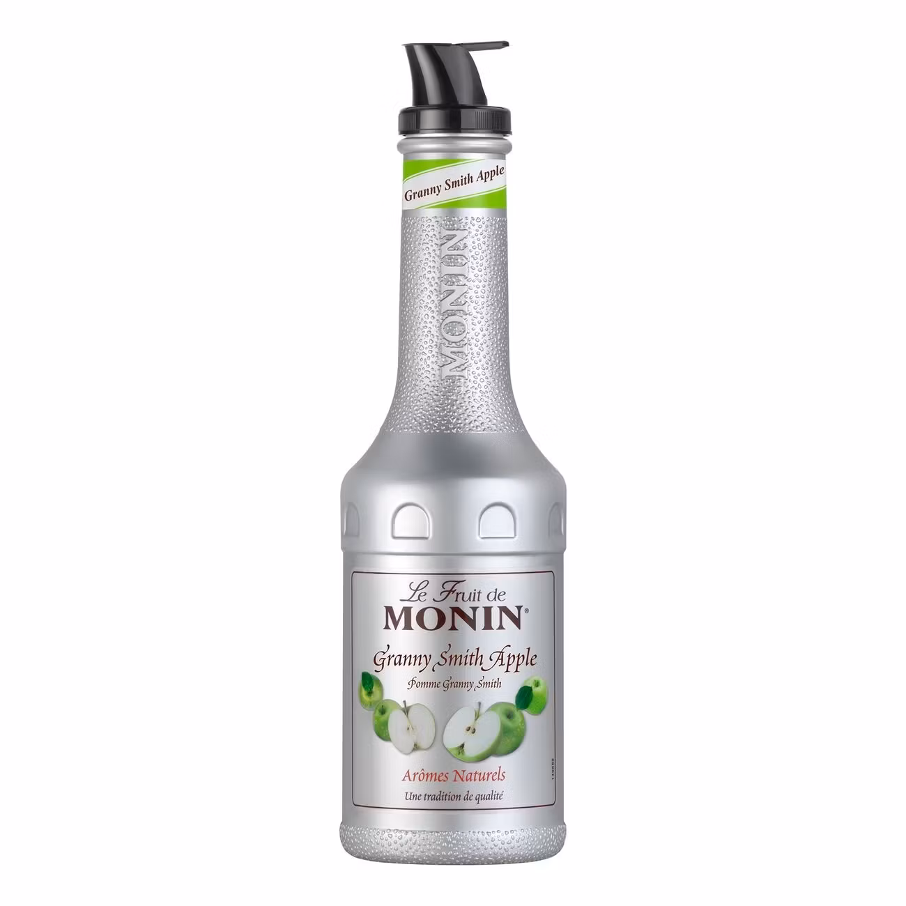 Monin Green Apple Purée innehåller puré med smak av grönt äpple. Levereras i flaska om 100 cl. Öppnad flaska håller sig i tre månader.