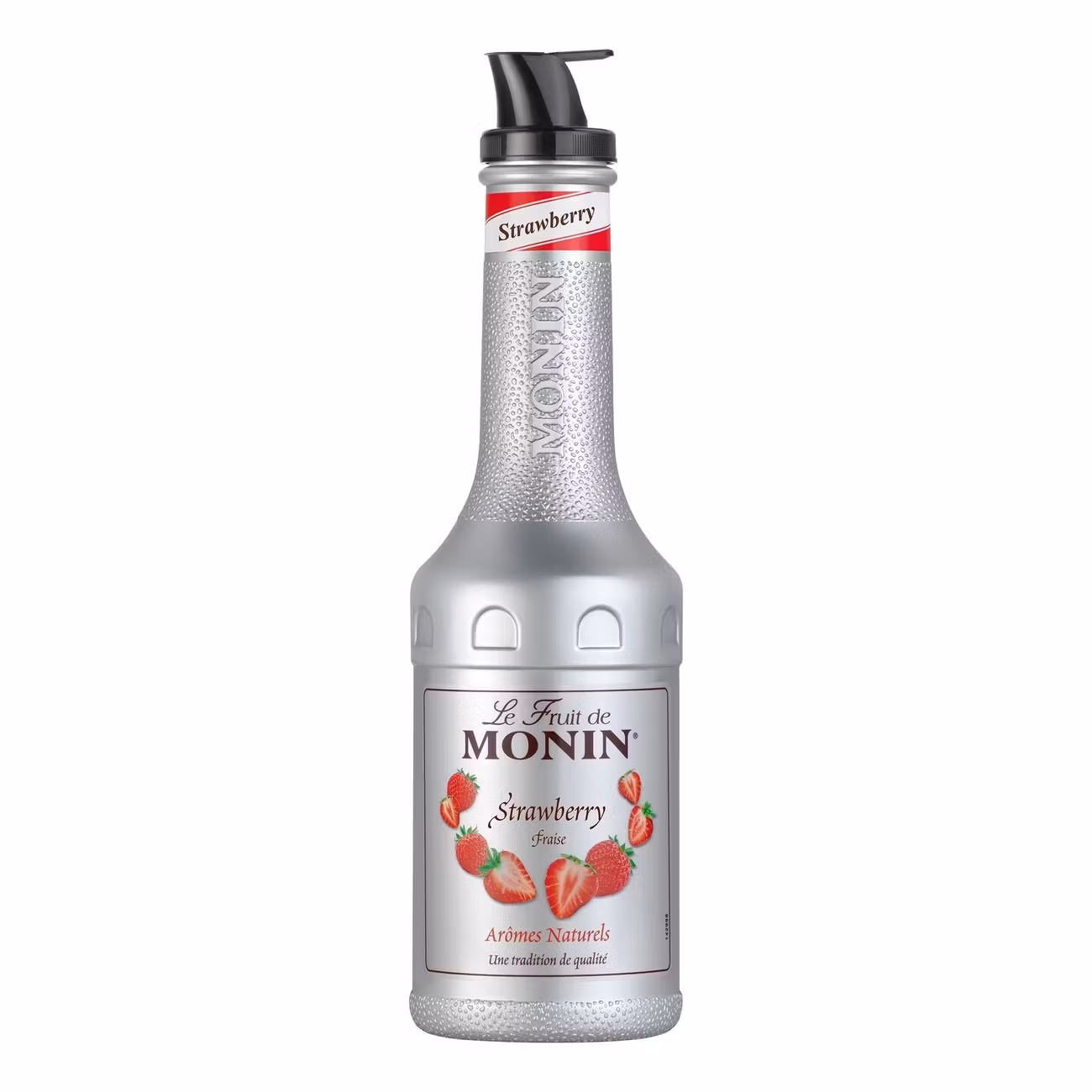 Monin Strawberry Purée innehåller puré med smak av jordgubbar som levereras i flaska om 100 cl. Öppnad flaska håller sig i tre månader.