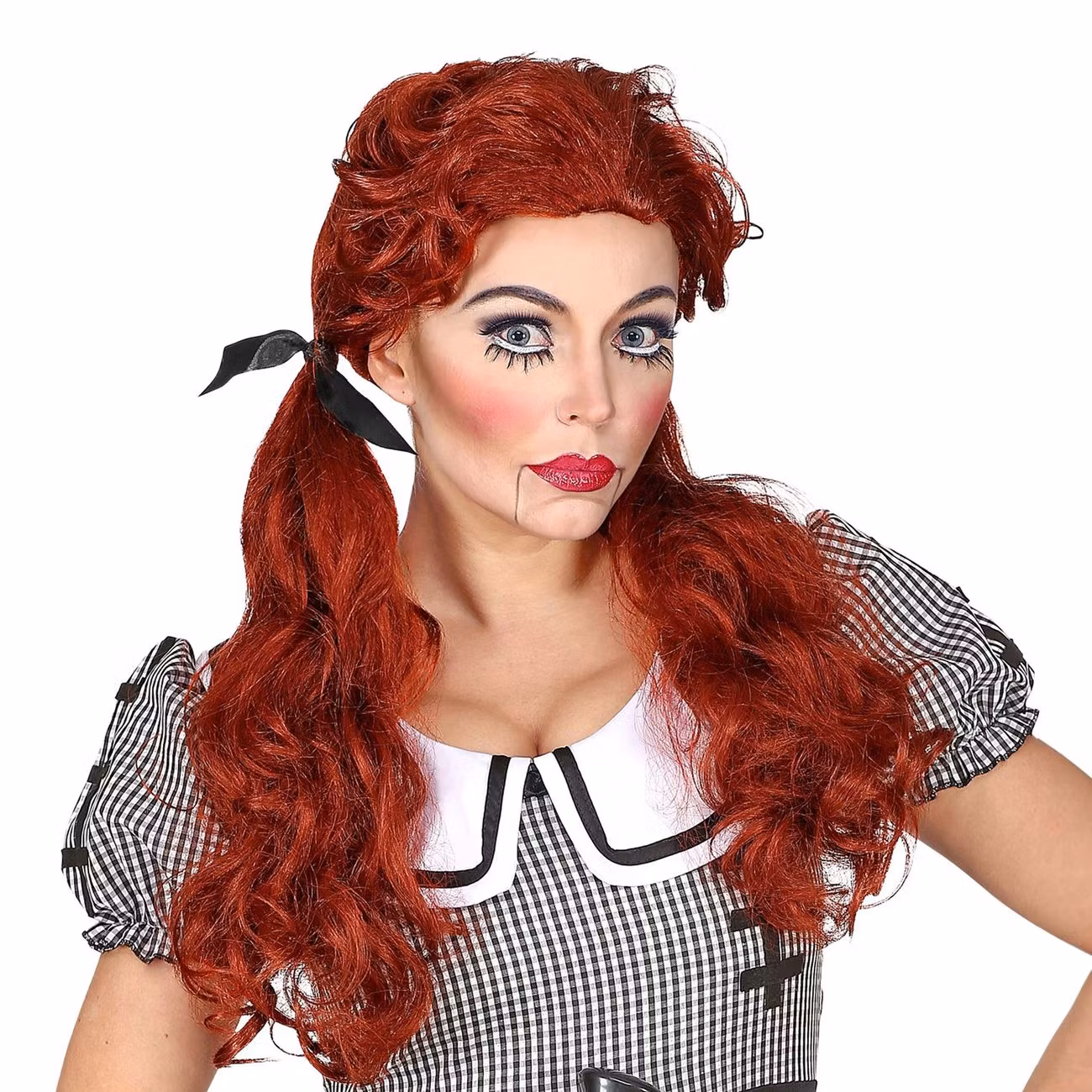 Mördardocka Peruk är en ganska creepy peruk som får dig att se ut som en ondsint docka. Peruken är lång, röd och lockig. Peruken är tillverkad i polyester och kommer i storleken One size för vuxna. Observera att endast peruken medföljer och ingenting annat.