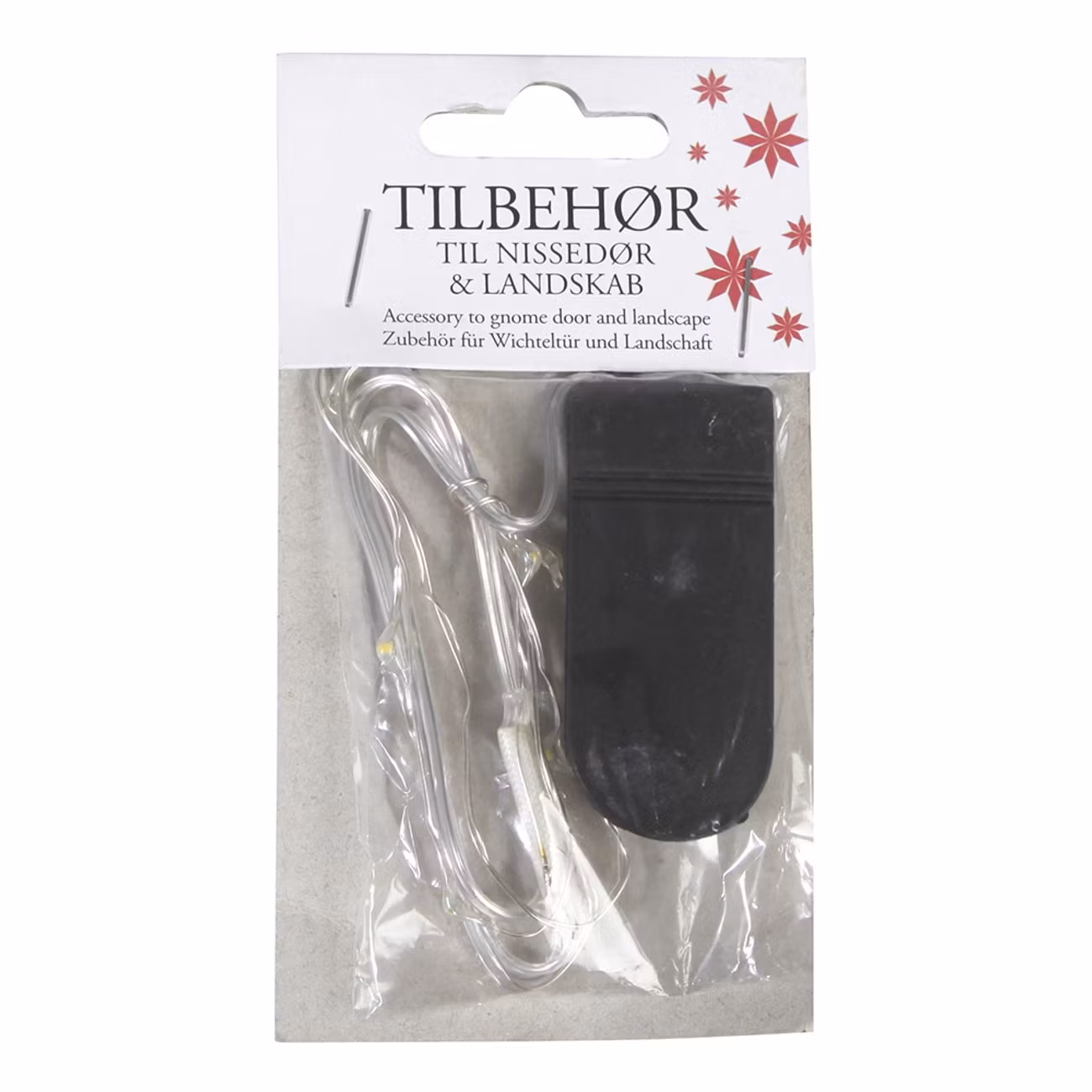 Nissedörr LED-Slinga innehåller en 50 cm lång LED-ljusslinga som drivs av 2 st CR2032-batterier (medföljer). Slingorna är endast för inomhusbruk och säljs styckvs.