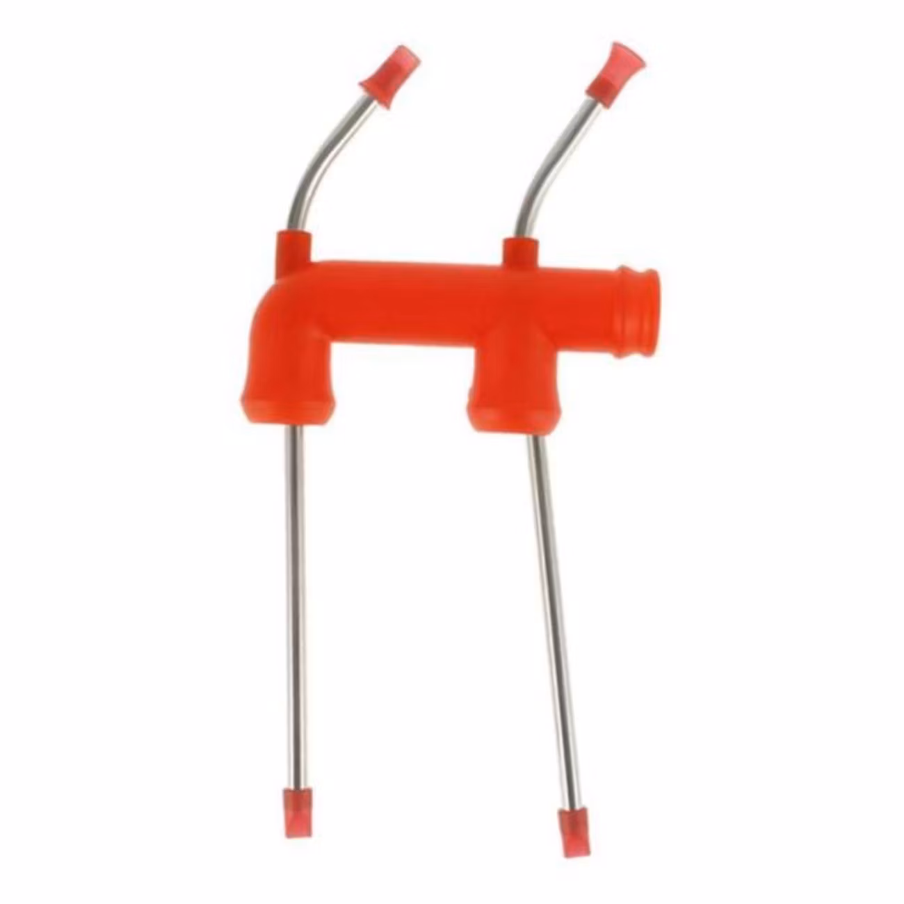 Ölsnorkel Dubbel är en liten och praktisk pryl som låter dig dricka upp två flaskor öl (eller annat) på väldigt kort tid. Stoppa in metallröret i flaskorna, vänd flaskorna upp-och-ned, sedan är det bara att suga i dig innehållet så fort du bara kan!
