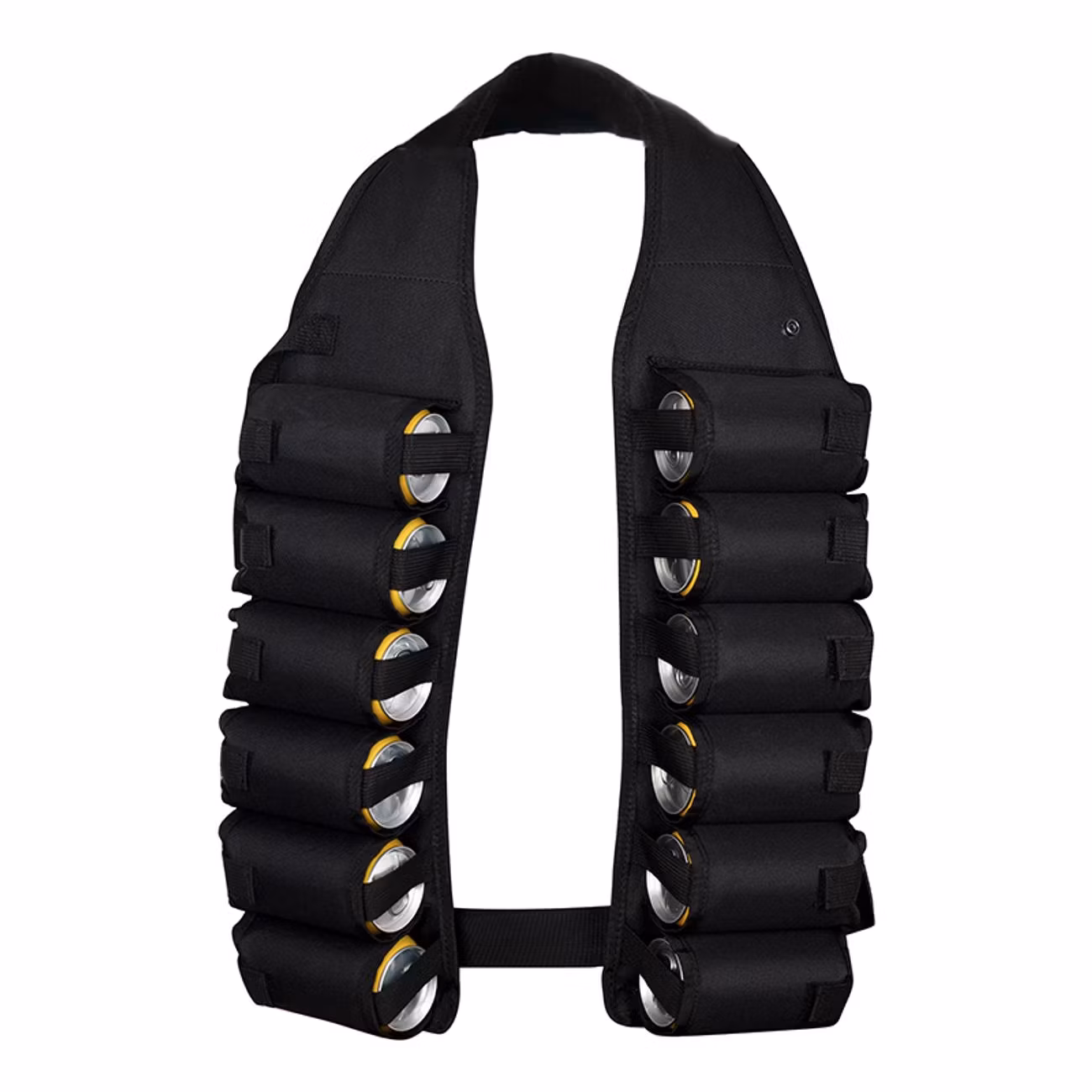 Ölvästen är precis vad du behöver om du befinner dig i en skarp festgrav. Den robusta ölvästen designad som ett patronbälte som du lägger över axlarna kan bära upp till 12 burkar öl eller läsk samtidigt. Med ett justerbart midjeband som expanderar upp till 140 cm, kan även du med ölmage få plats.