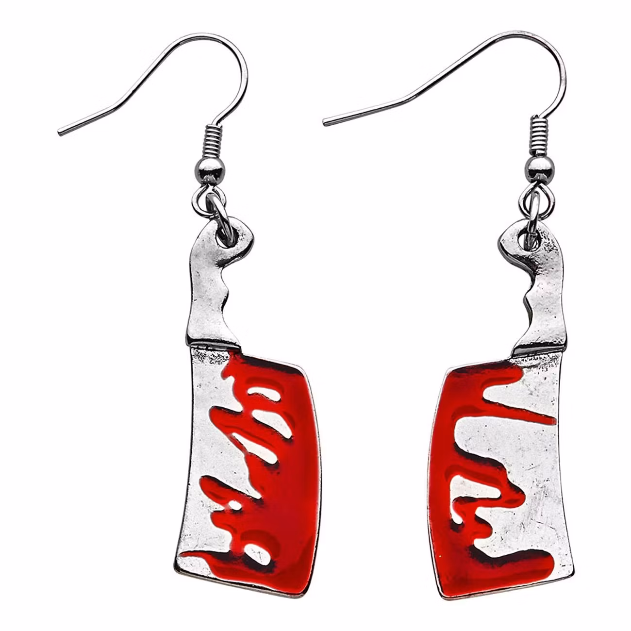 Är det skräckfest så är det, och då ska inget lämnas åt slumpen. Inte ens dina örsnibbar! Så se till att göra din läskiga outfit komplett med dessa blodiga knivar till örhängen. Perfekt om du är ett Dexter-fan eller om du tänkt klä ut dig till en slaktare á la Halloween.