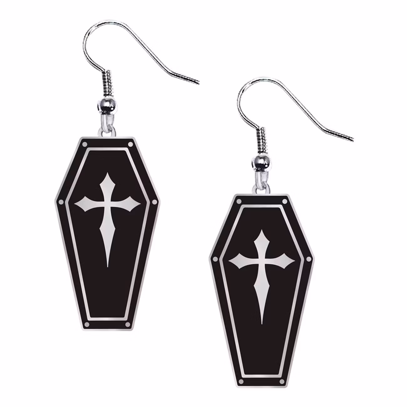 Letar du efter den perfekta detaljen till din halloweenoutfit eller goth-inspirerade look? Då är de här örhängena formade som små dödskistor precis vad du behöver!